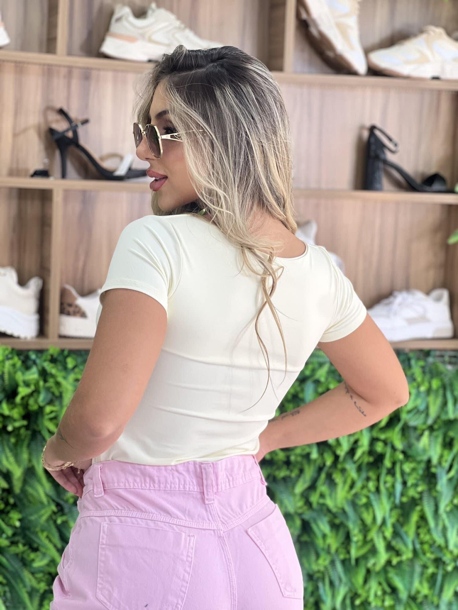 Blusa de poliamida com manga curta e gola quadrada, que valoriza o colo com elegância. Possui tecido duplo na região dos seios, oferecendo mais segurança e conforto ao usar. Modelagem justa e versátil, ideal para compor looks casuais ou mais sofisticados.