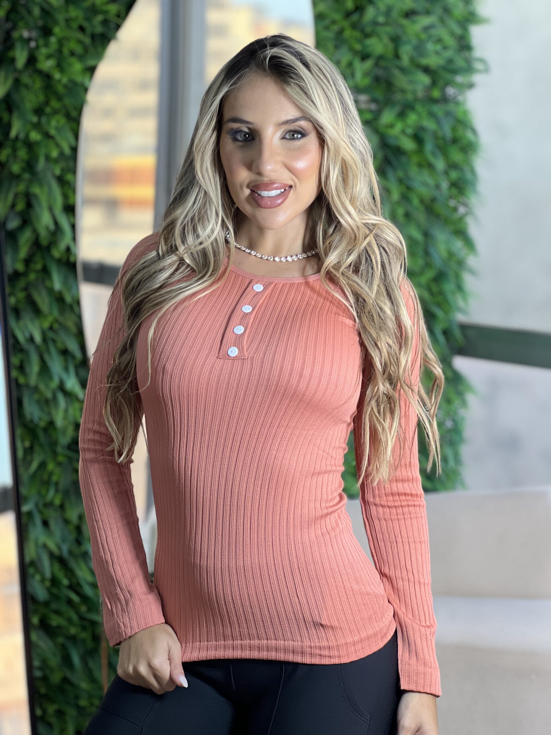 BLUSA TÉRMICA BOTÃO PESSEGO