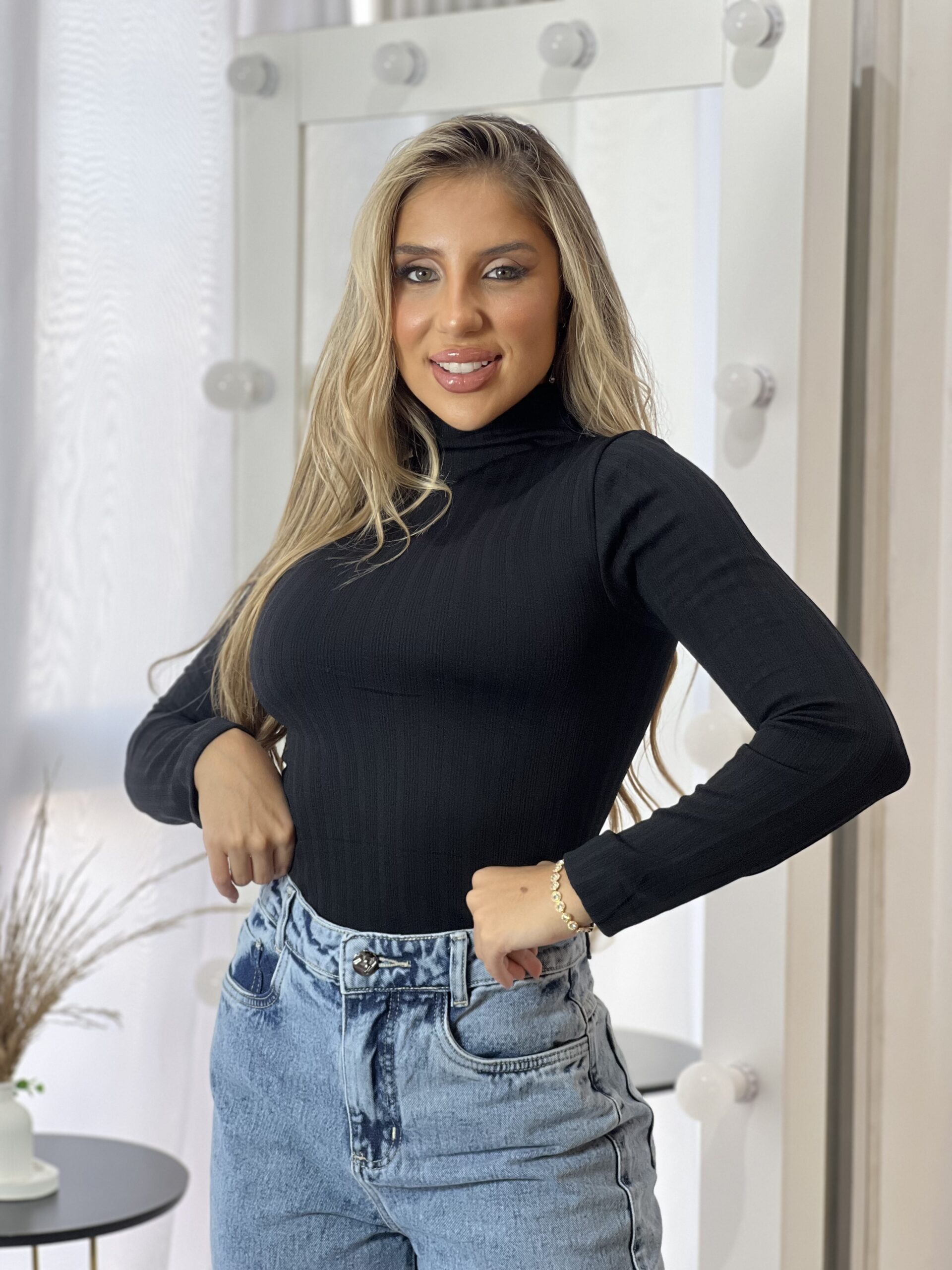BLUSA TÉRMICA CANELADA GOLA PRETO
