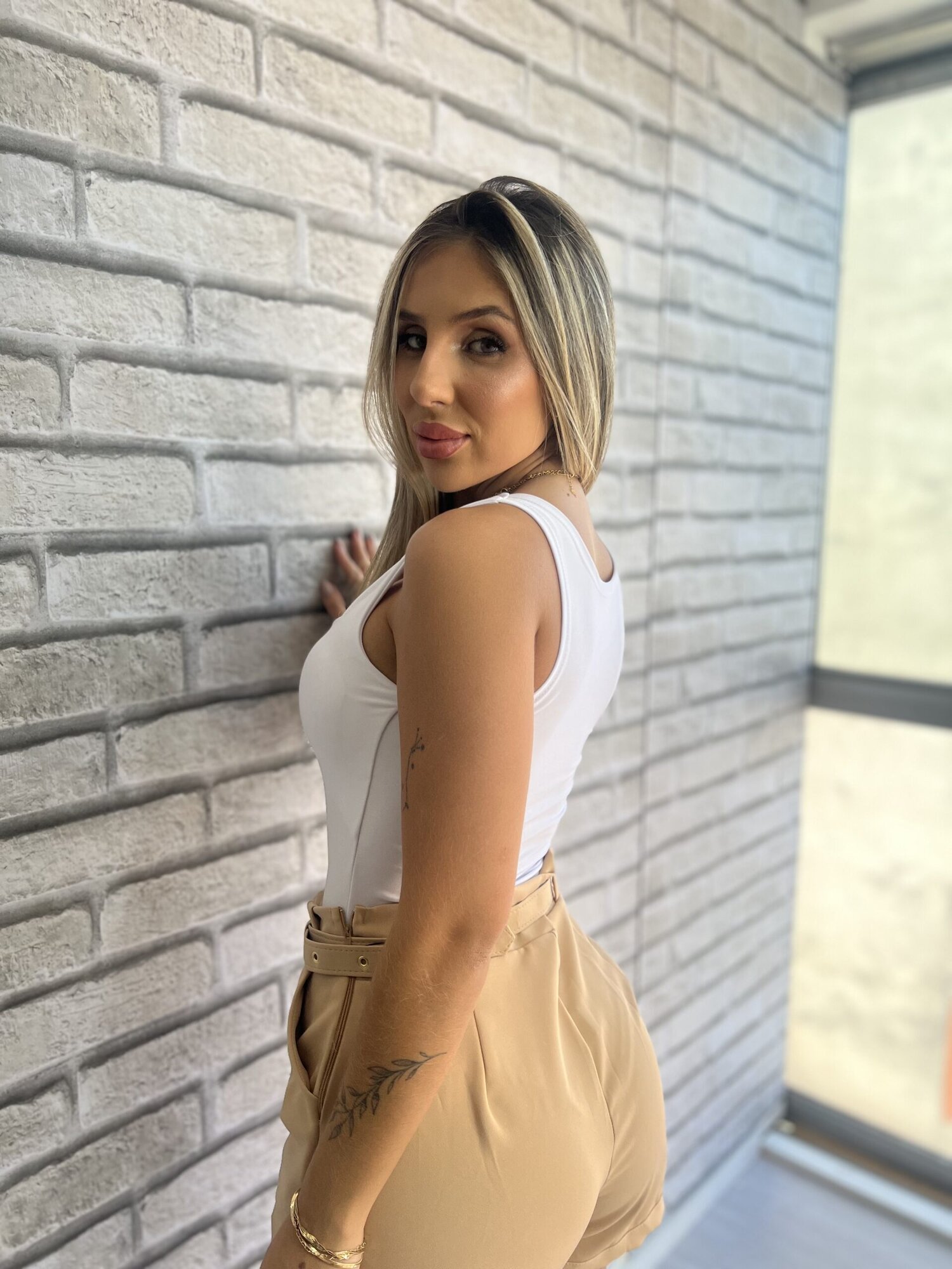 Body é uma ótima pedida para compor seu look. Em tecido suplex, o modelo Simone é super confortável.