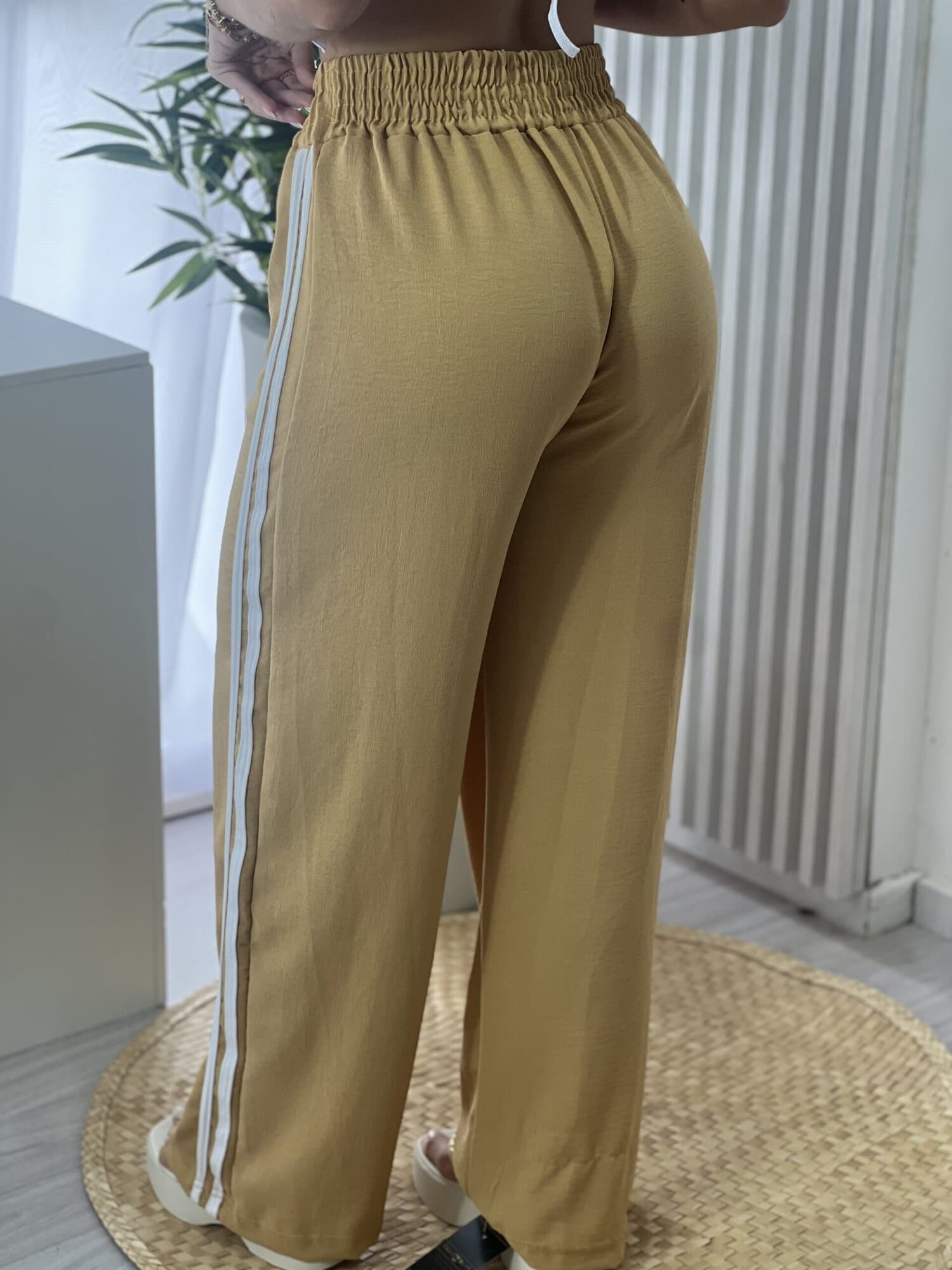 CALÇA DUDA LISTRAS MOSTARDA
