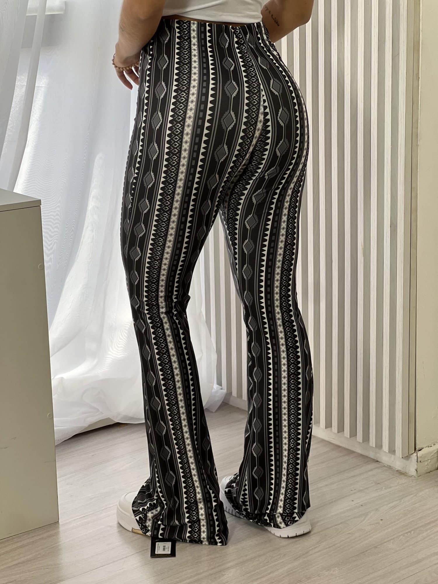 CALÇA FLARE ESTAMPADA AMARA PRETO BRANCO