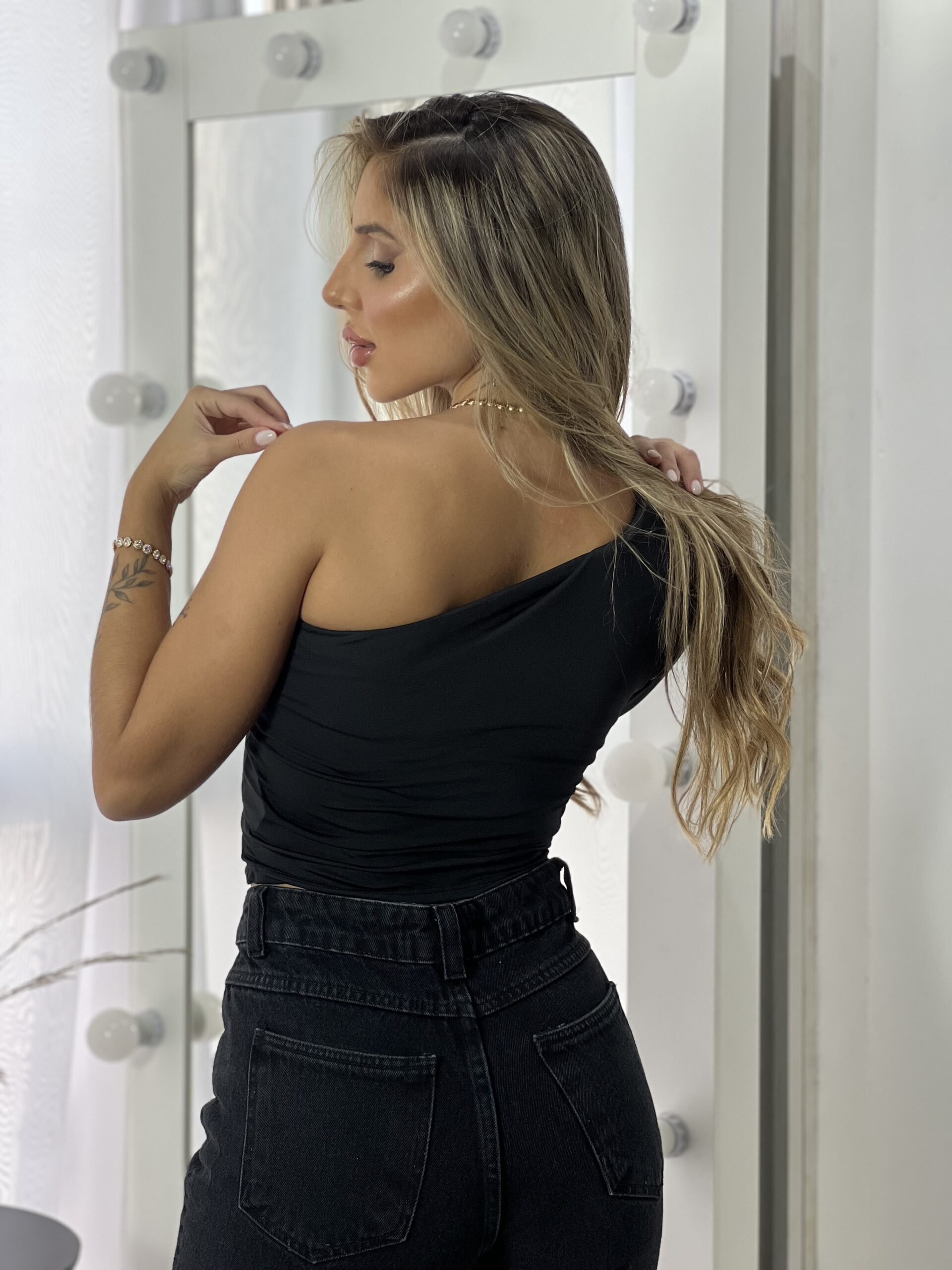 CALÇA JEANS MOM STRASS BLACK
