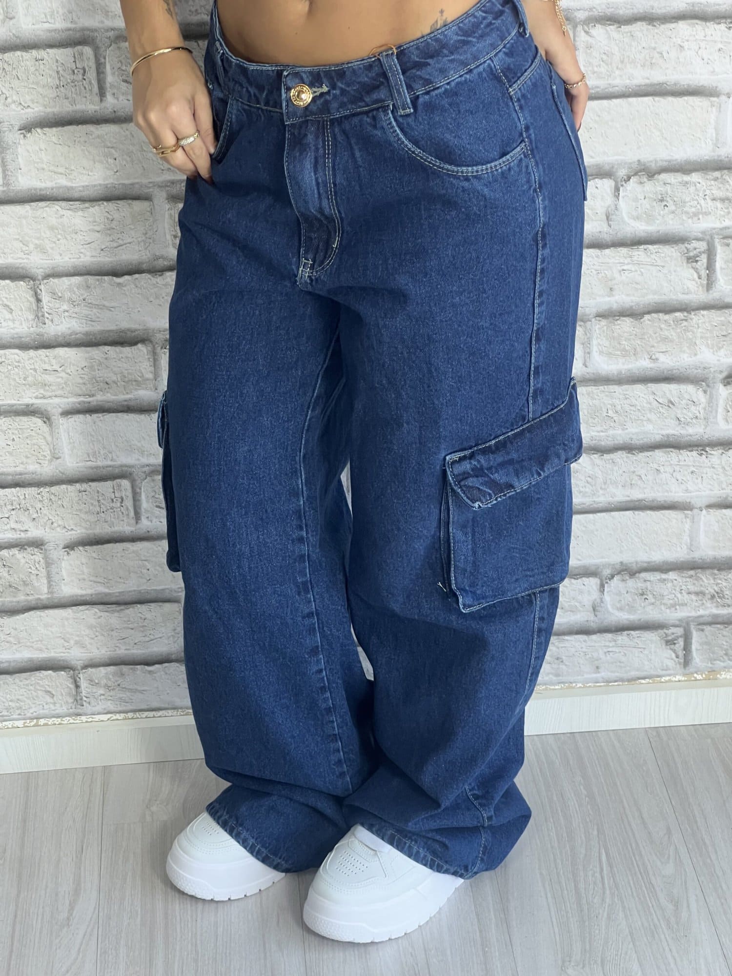 CALÇA JEANS WIDE LEG CARGO AMANDA 23 GRAUS