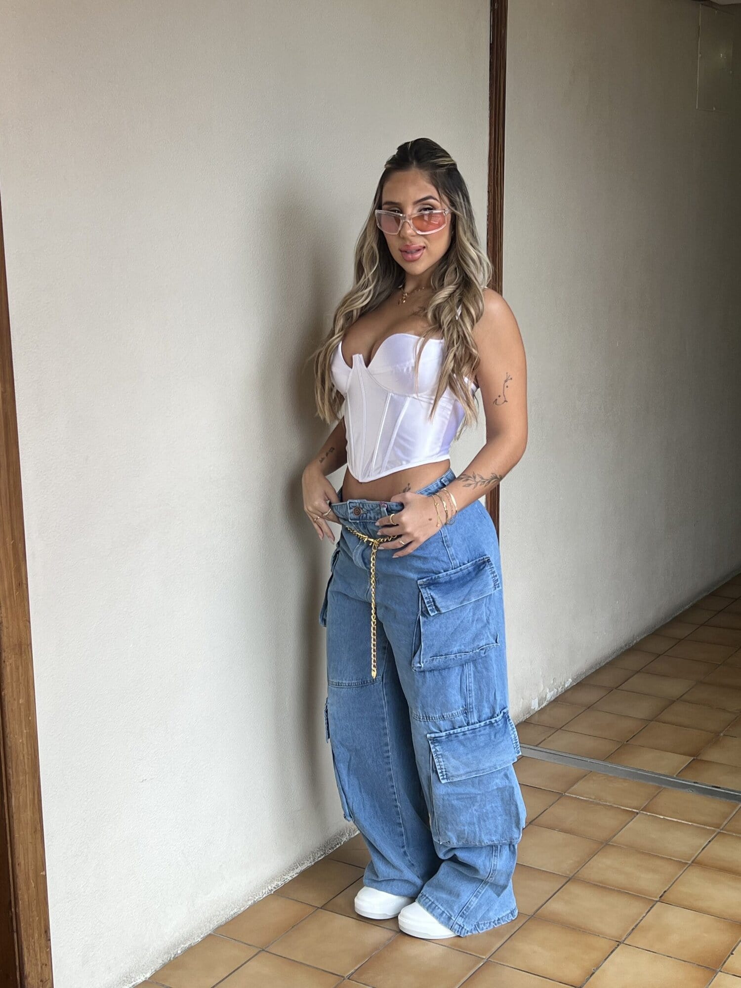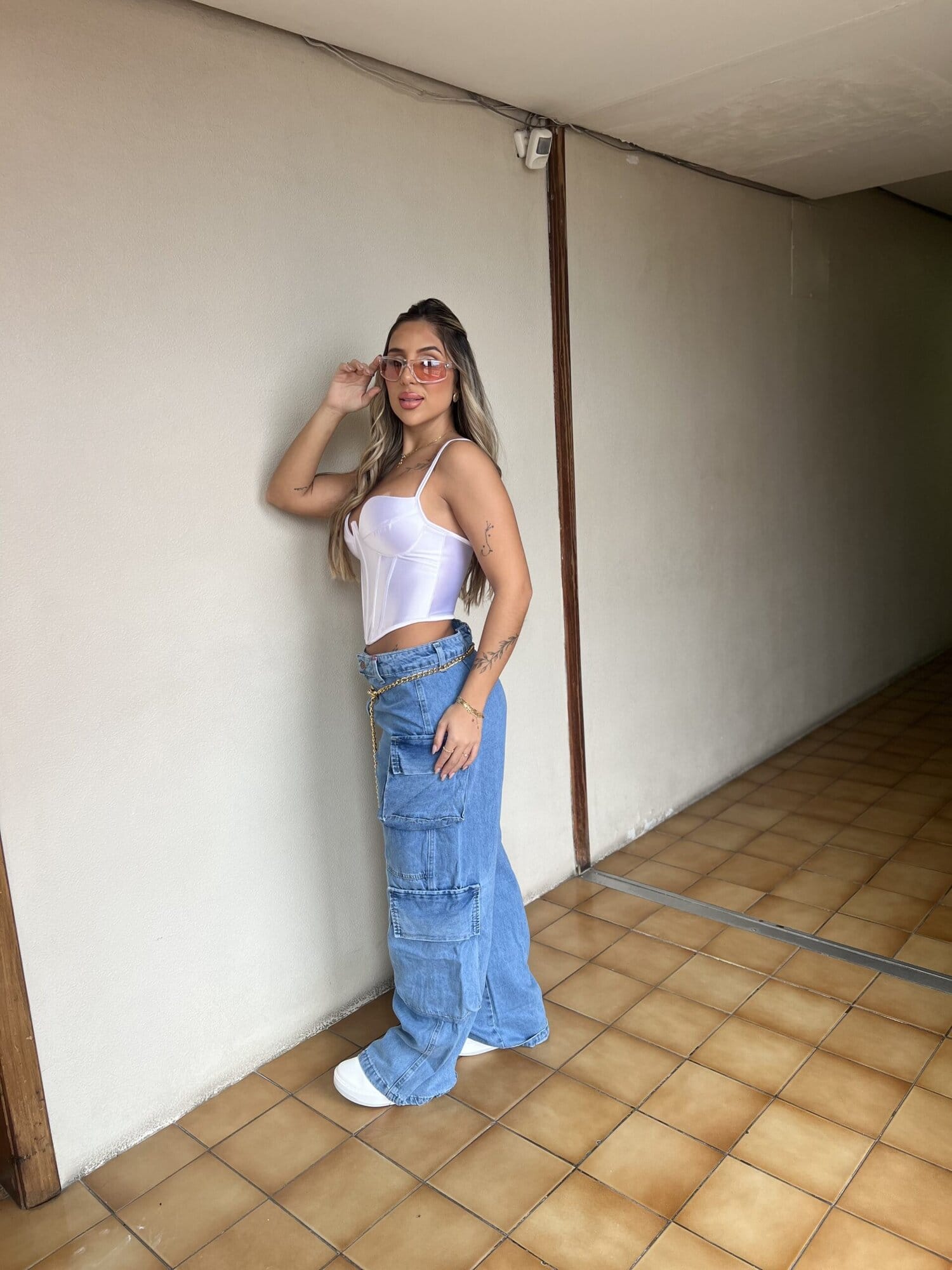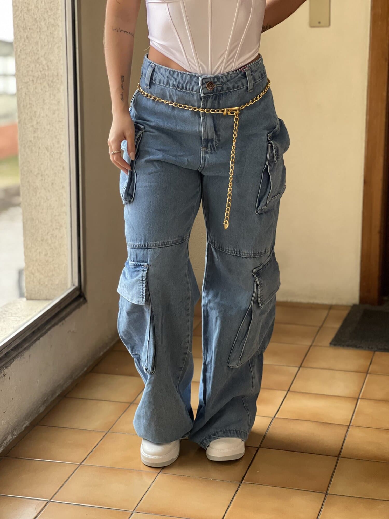 CALÇA JEANS WIDE LEG CARGO KELLY 23 GRAUS