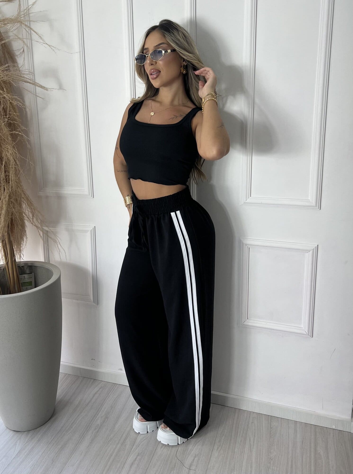 CALÇA LISTRAS DUDA PRETO