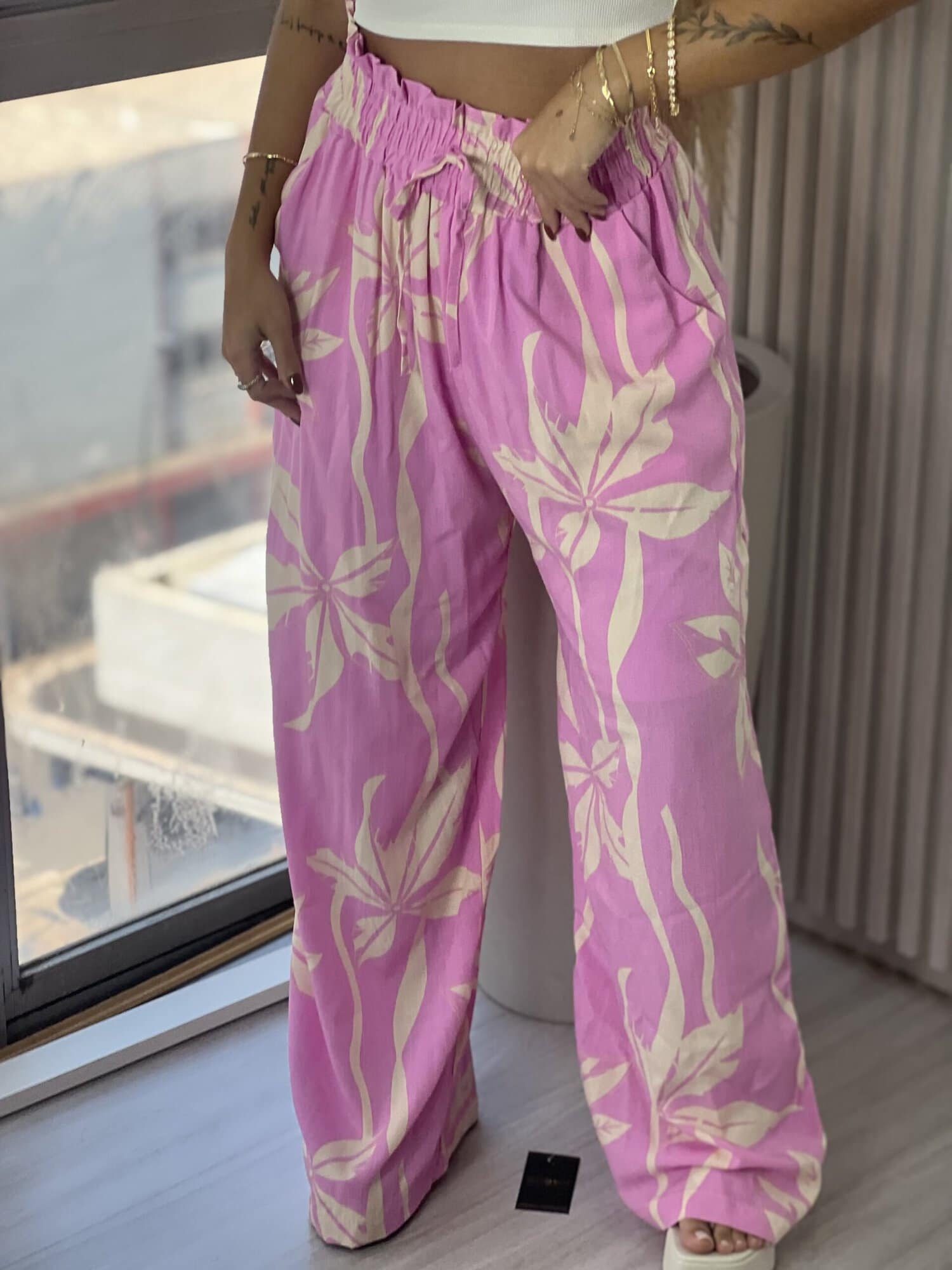CALÇA PANTALONA JAQUELINE ROSA ESTAMPADO