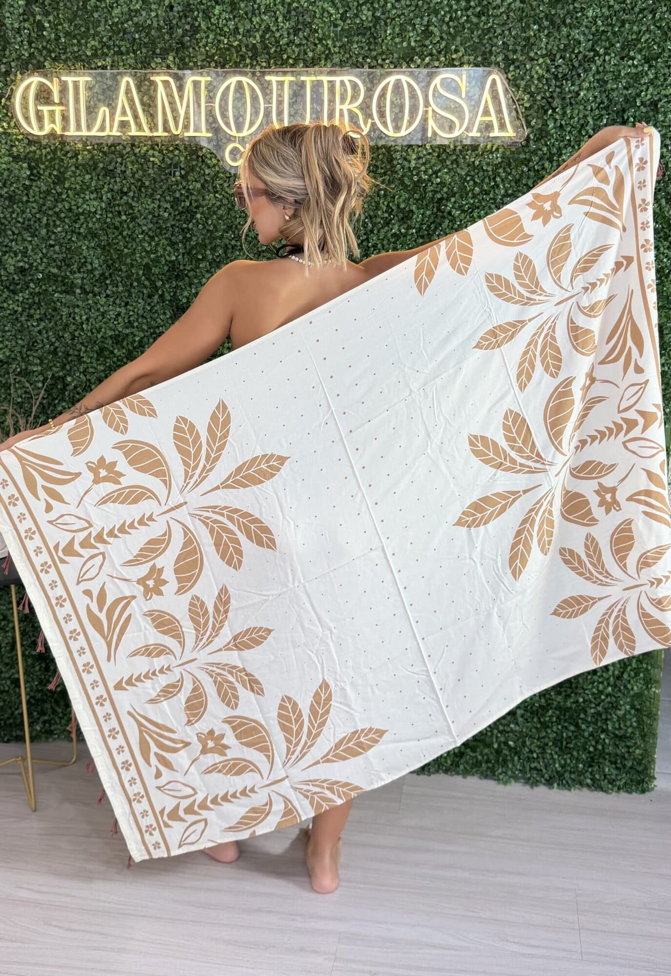 A linha Moda Praia Glamourosa Chic oferece conforto para mulheres de forte personalidade, que não abrem mão de estarem sempre glamourosas e deslumbrantes. Seja em praias ou piscinas, aposte nesta composição perfeita para usar com seu conjunto de verão. Utilize sua criatividade e faça diversas amarrações diferentes.