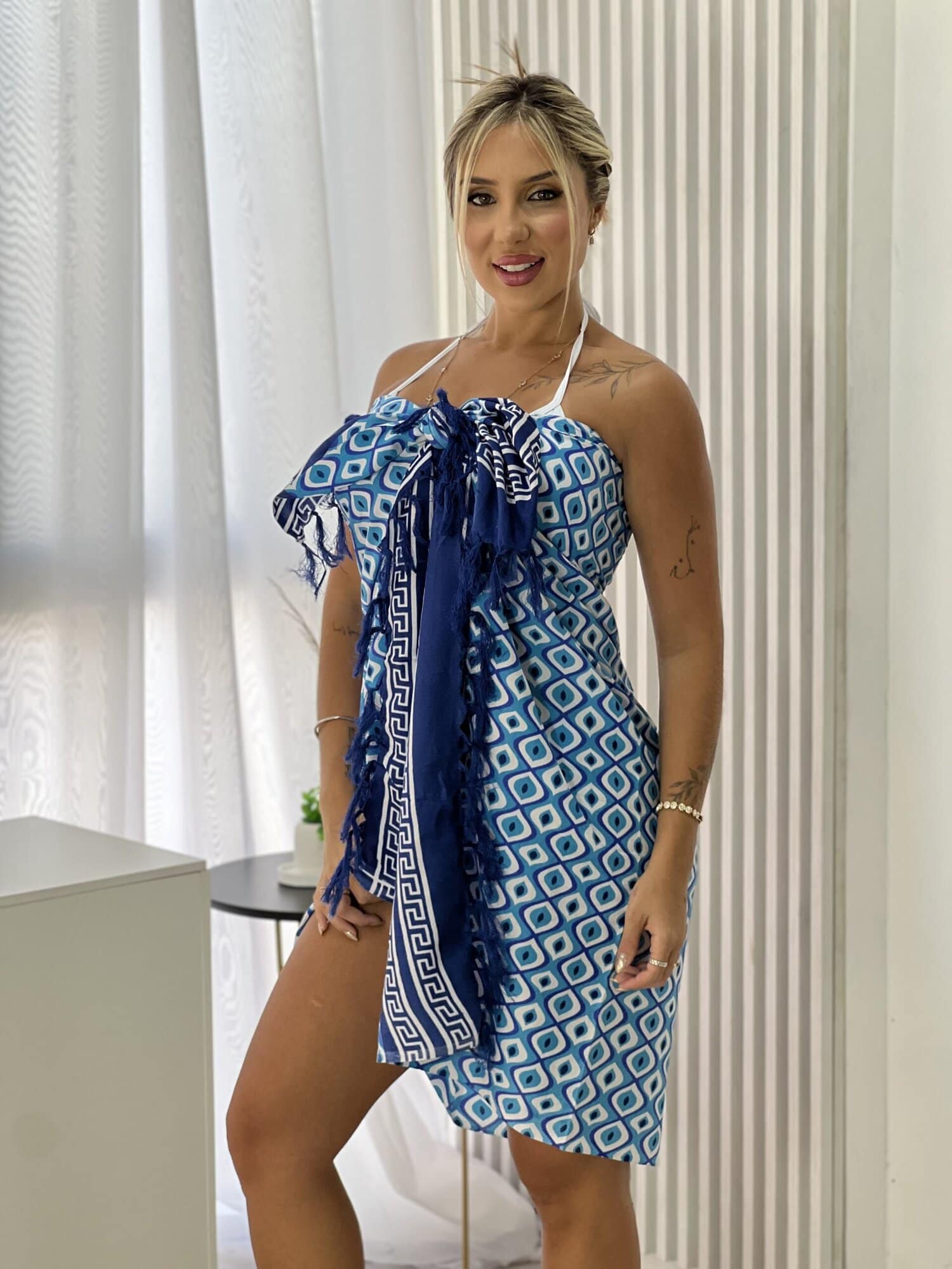 A linha Moda Praia Glamourosa Chic oferece conforto para mulheres de forte personalidade, que não abrem mão de estarem sempre glamourosas e deslumbrantes. Seja em praias ou piscinas, aposte nesta composição perfeita para usar com seu conjunto de verão. Utilize sua criatividade e faça diversas amarrações diferentes.