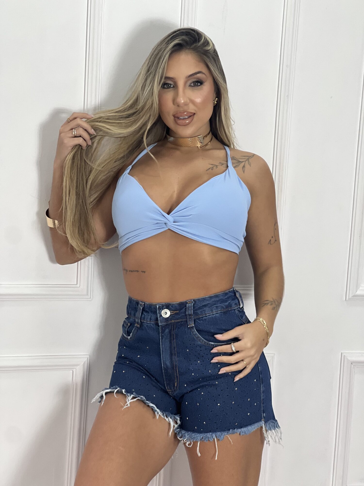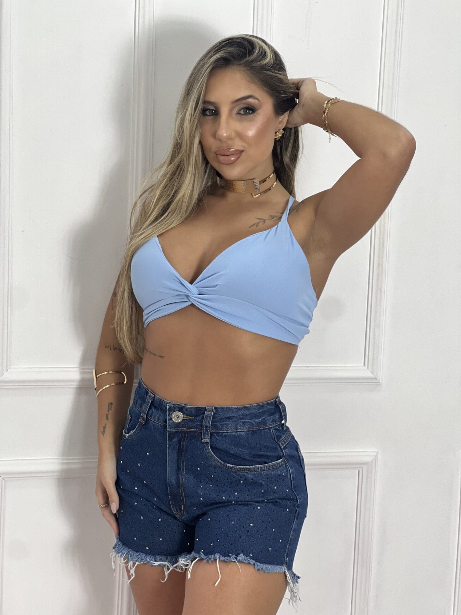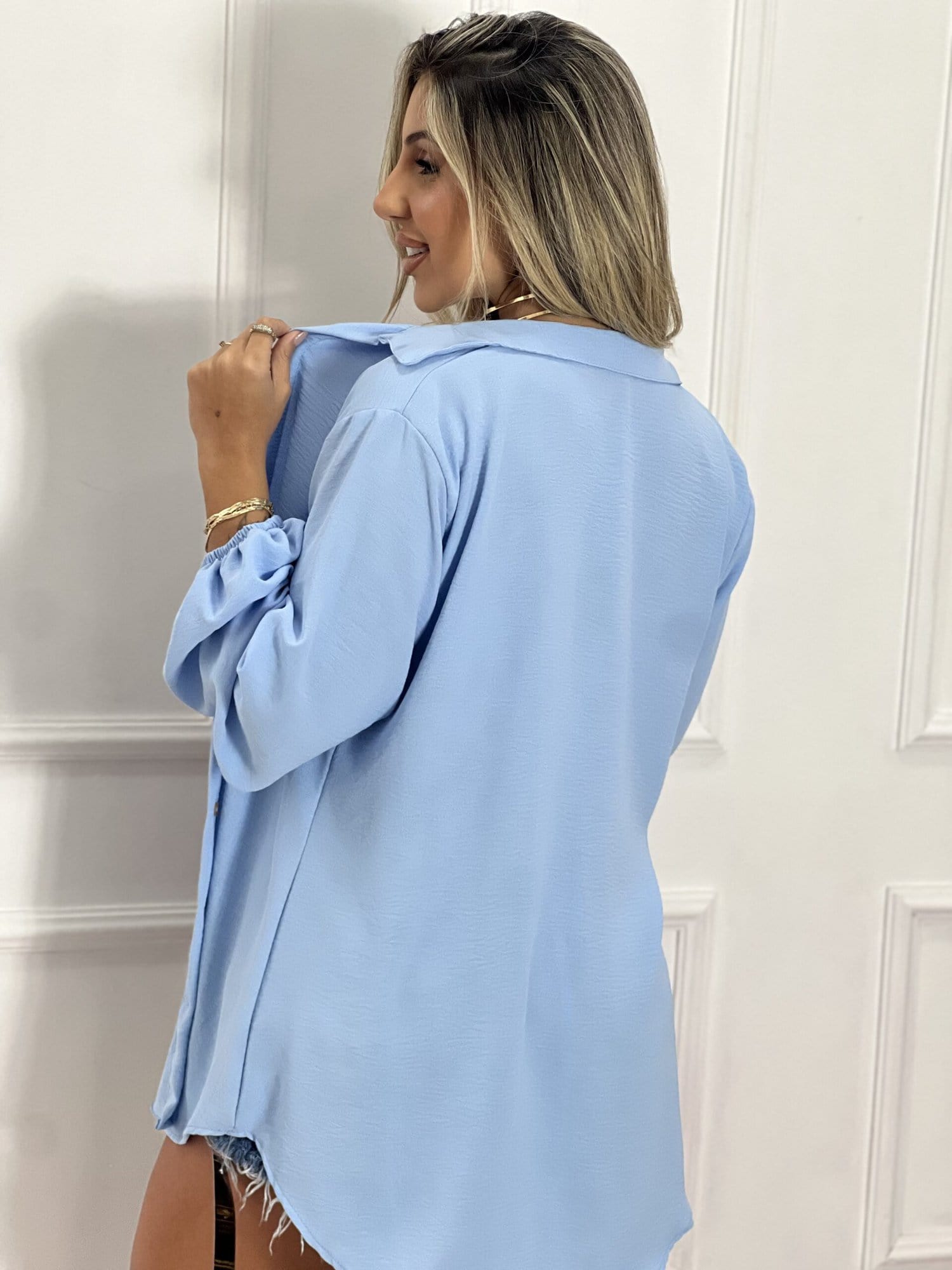 CHEMISE COM CROPPED AZUL BB