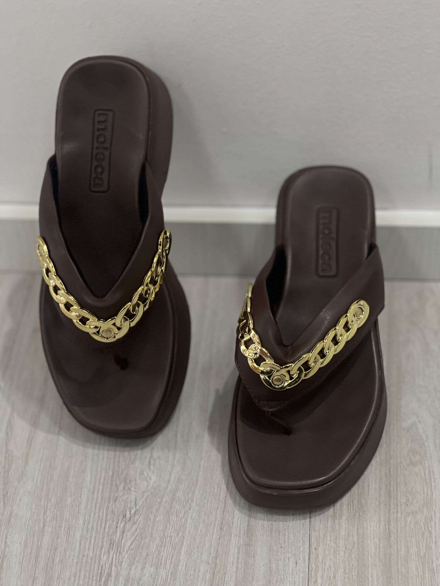 CHINELO TAMANCO NAPA PELE CHOCOLATE MOLECA 5503 117