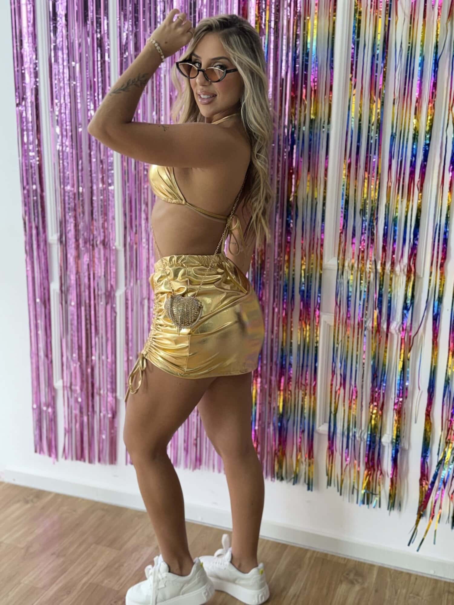 Conjunto Carnaval metalizado, ideal para quem quer brilhar e se destacar na folia. Com acabamento metalizado e visual moderno, é perfeito para blocos, festas, eventos noturnos e produções cheias de atitude.
