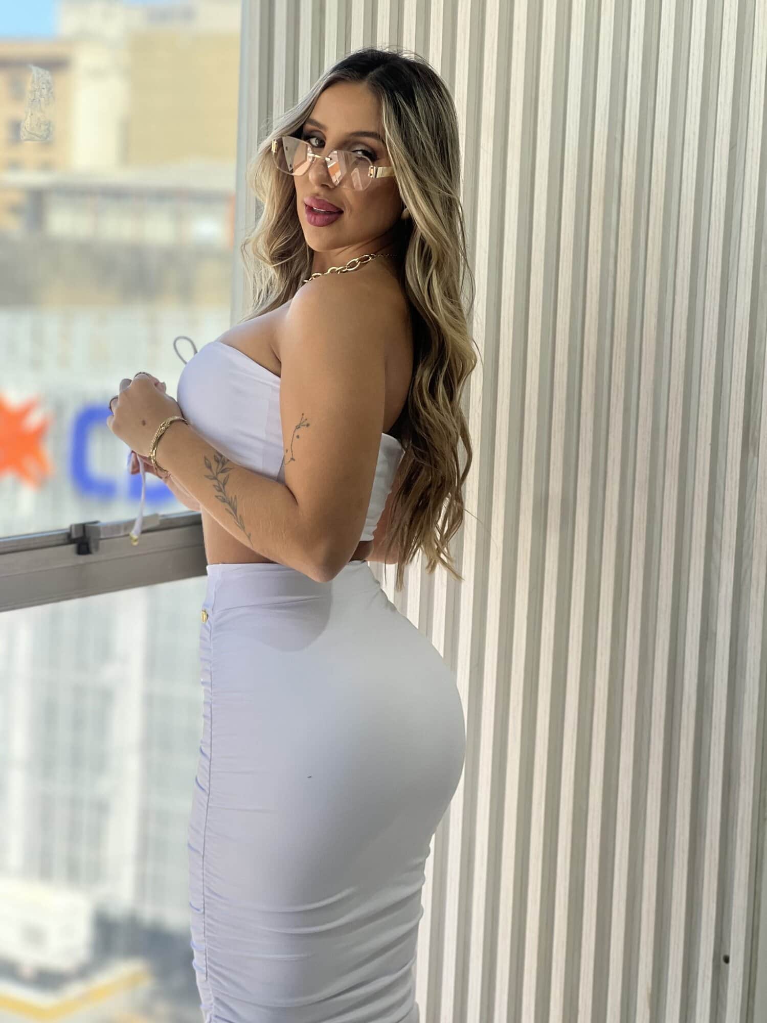 Conjunto Top e Saia Midi Franzida Poliamida Branco Donna Chica