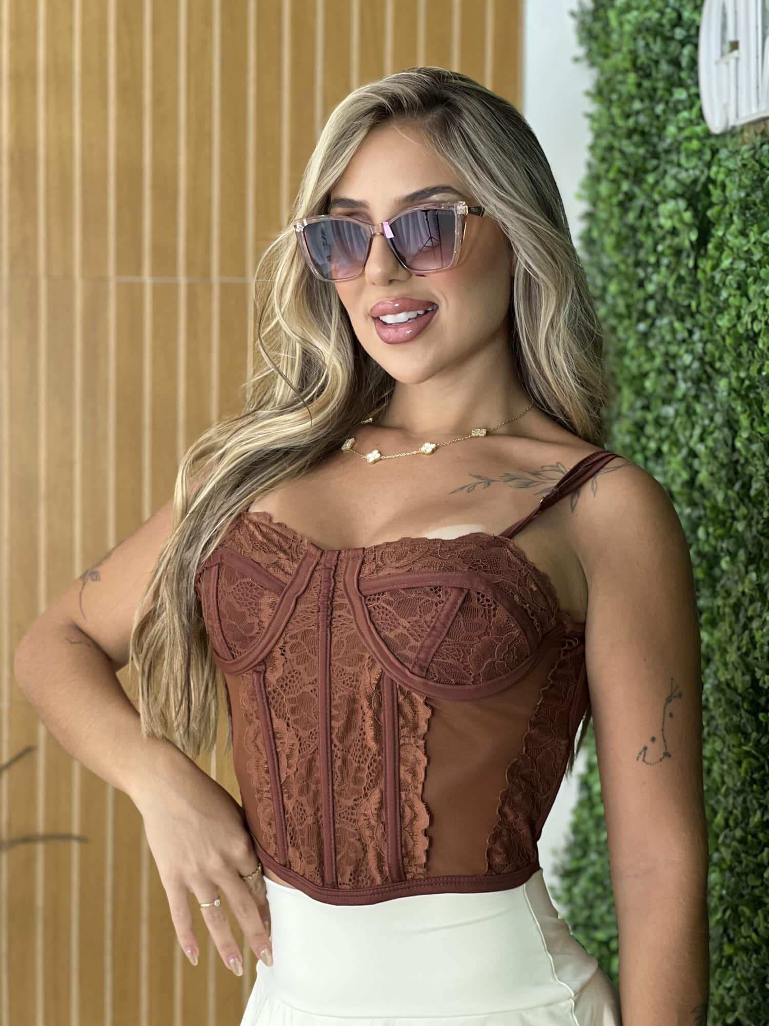 CORSELET RENDA MARROM