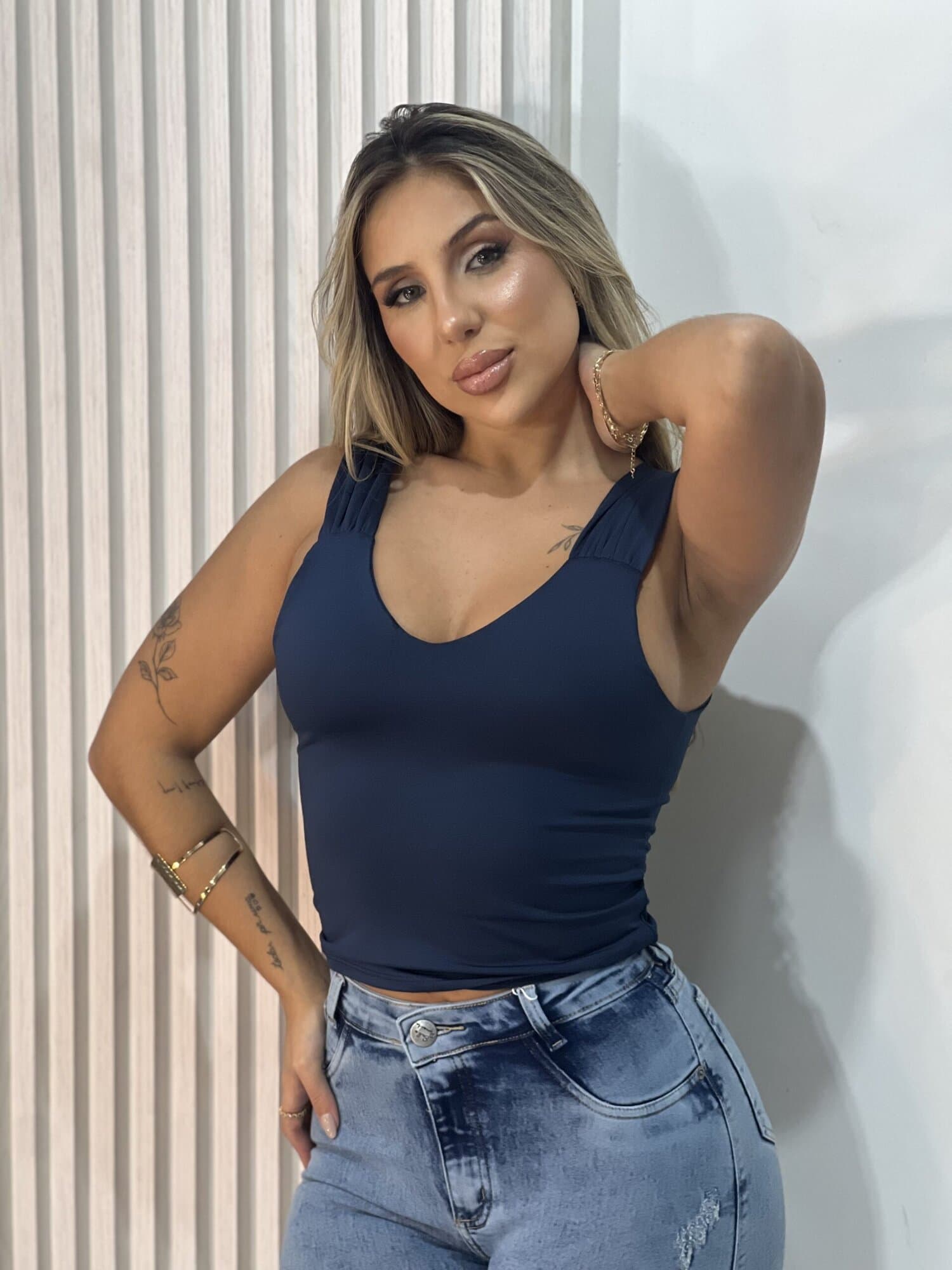 O top que já é uma super aposta da coleção: o top tube. Veste super bem e permite diversas combinações;