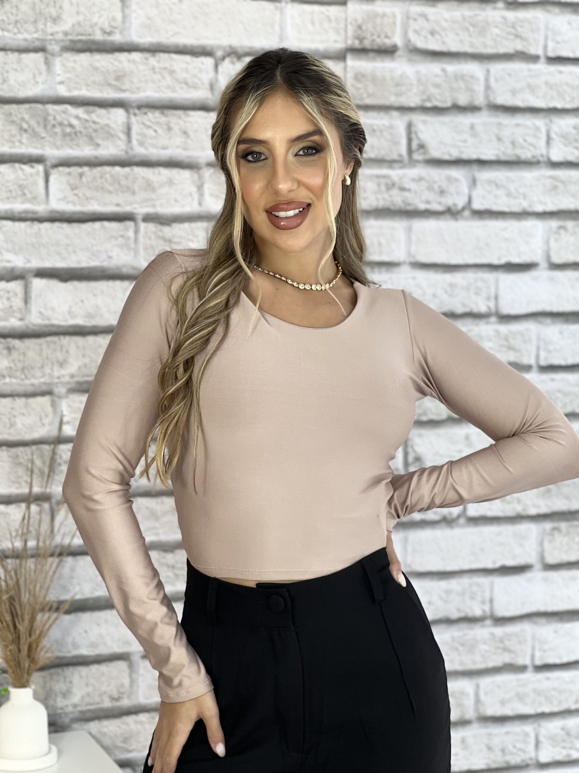 CROPPED MANGA LONGA BÁSICO BEGE