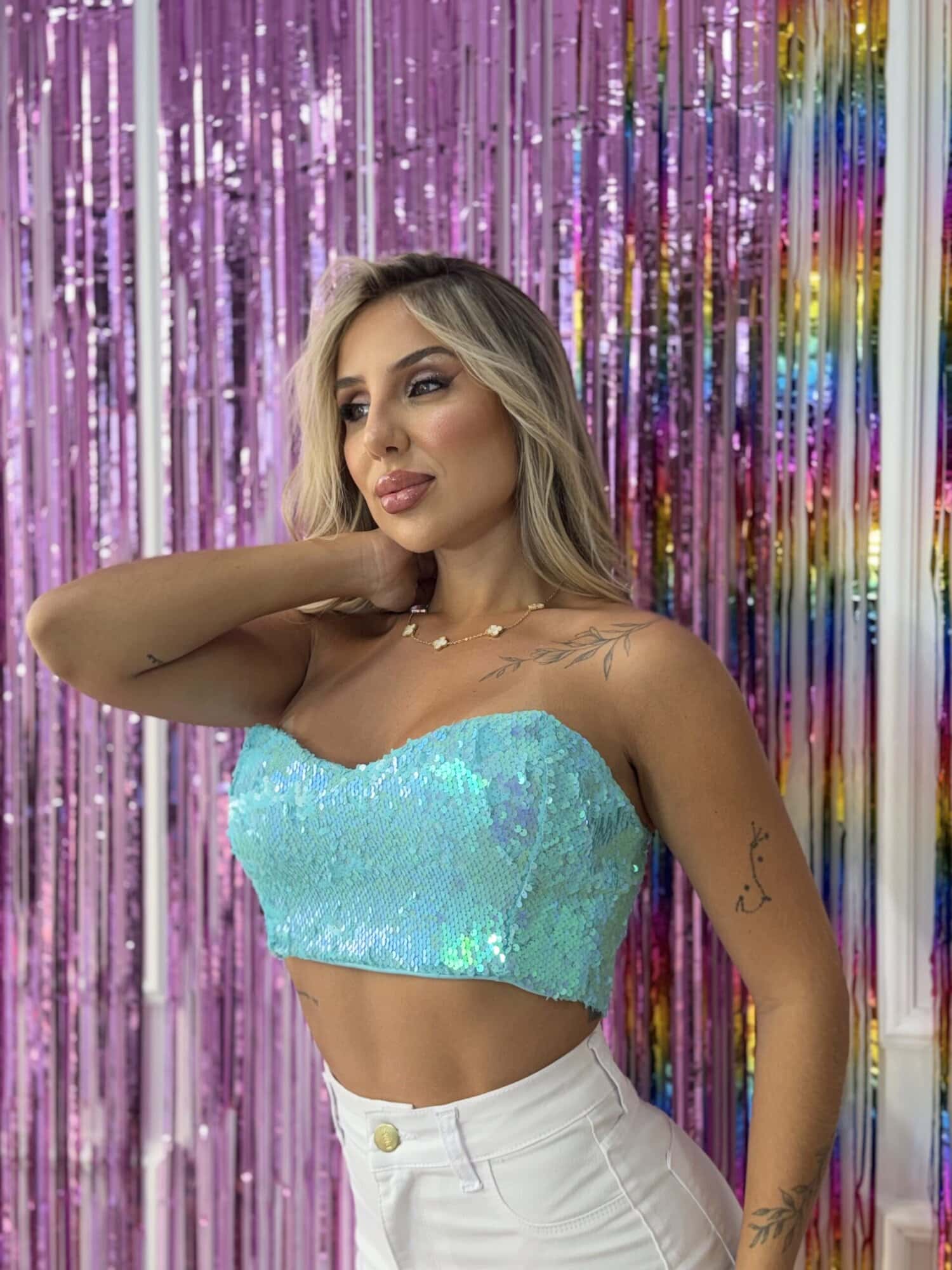 CROPPED PAETÊ ORQUÍDEA AZUL