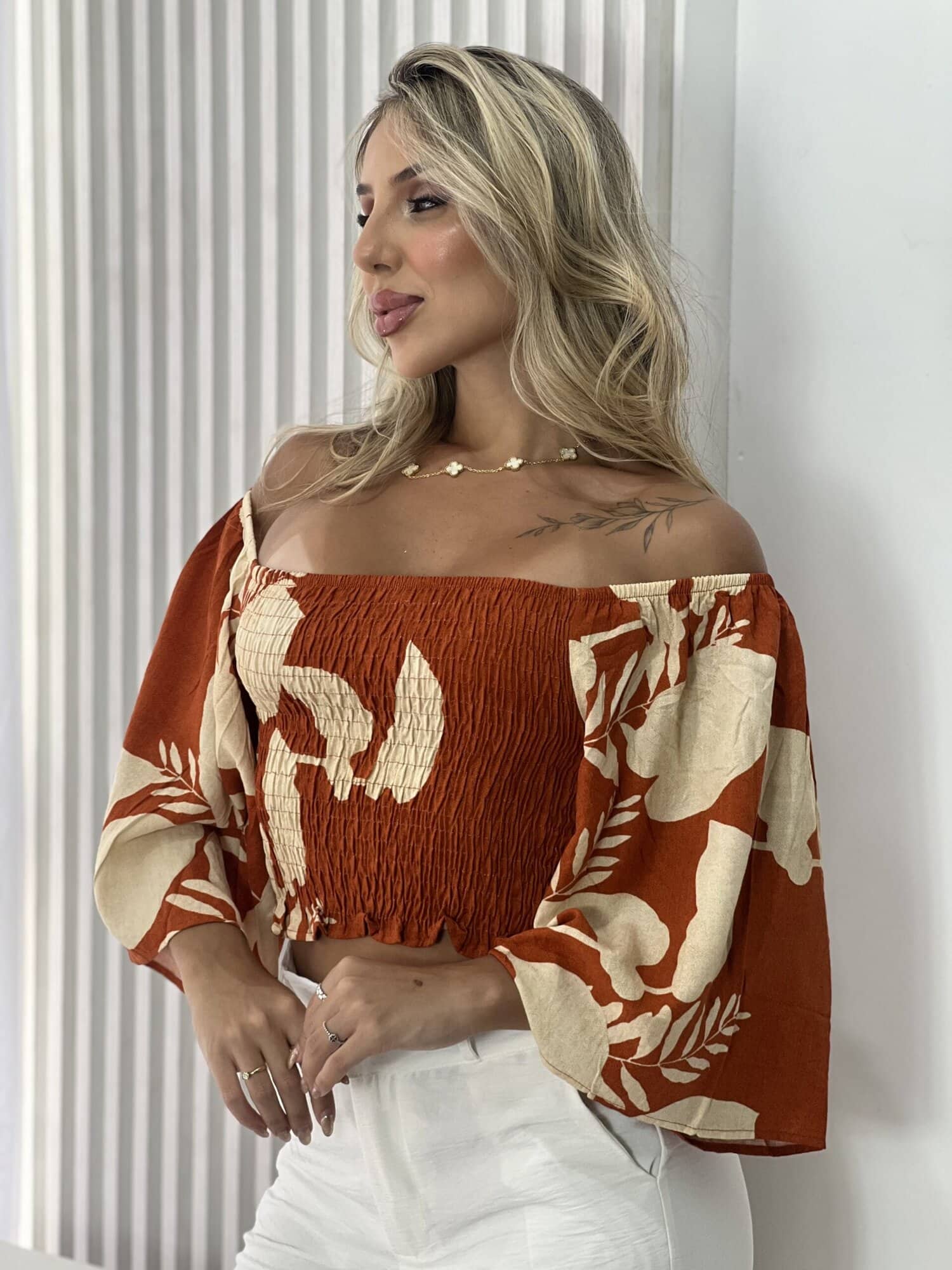 Cropped ciganinha em lastex com mangas, ideal para quem busca um visual feminino, moderno e confortável. O lastex garante ajuste perfeito ao corpo, proporcionando conforto e valorizando a silhueta sem apertar. O modelo ciganinha traz charme e leveza ao look, enquanto as mangas adicionam delicadeza e versatilidade à peça. Fácil de combinar com saias, shorts ou calças de cintura alta, é perfeito para compor produções casuais ou mais arrumadas. Uma peça prática, estilosa e indispensável no guarda-roupa feminino.