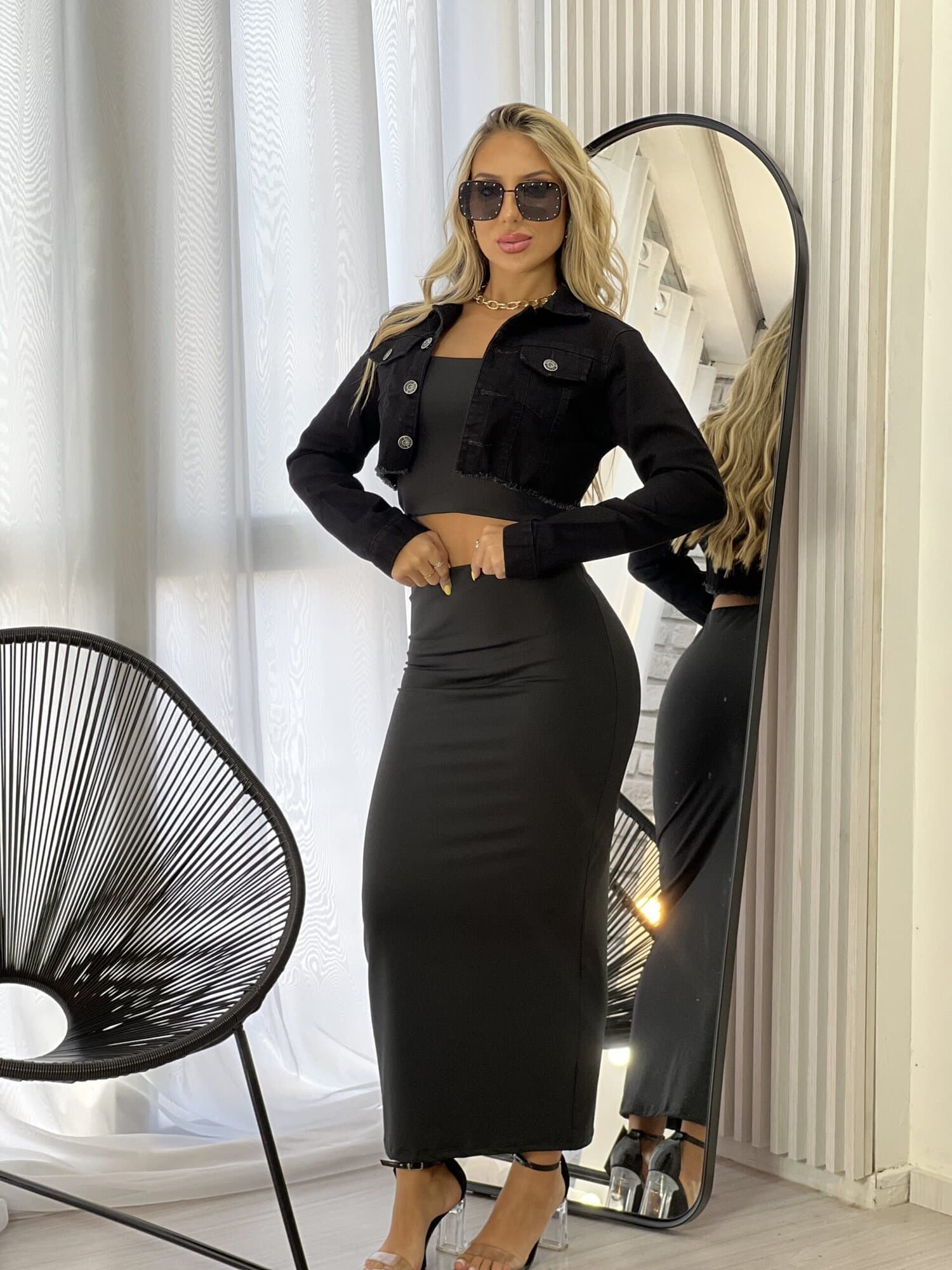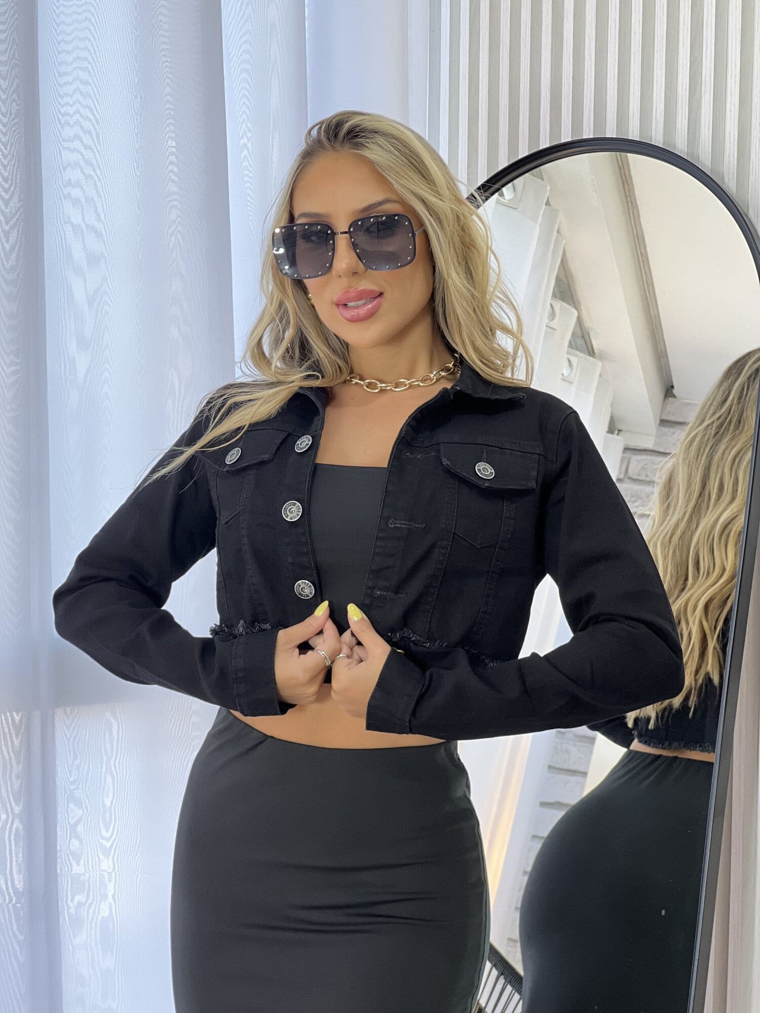JAQUETA CROPPED JEANS LORENA BLACK