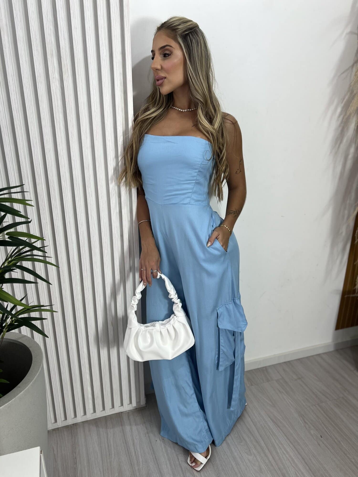 Macacão longo cargo tomara que caia Glamourosa Chic — elegância e estilo urbano em uma única peça. ????