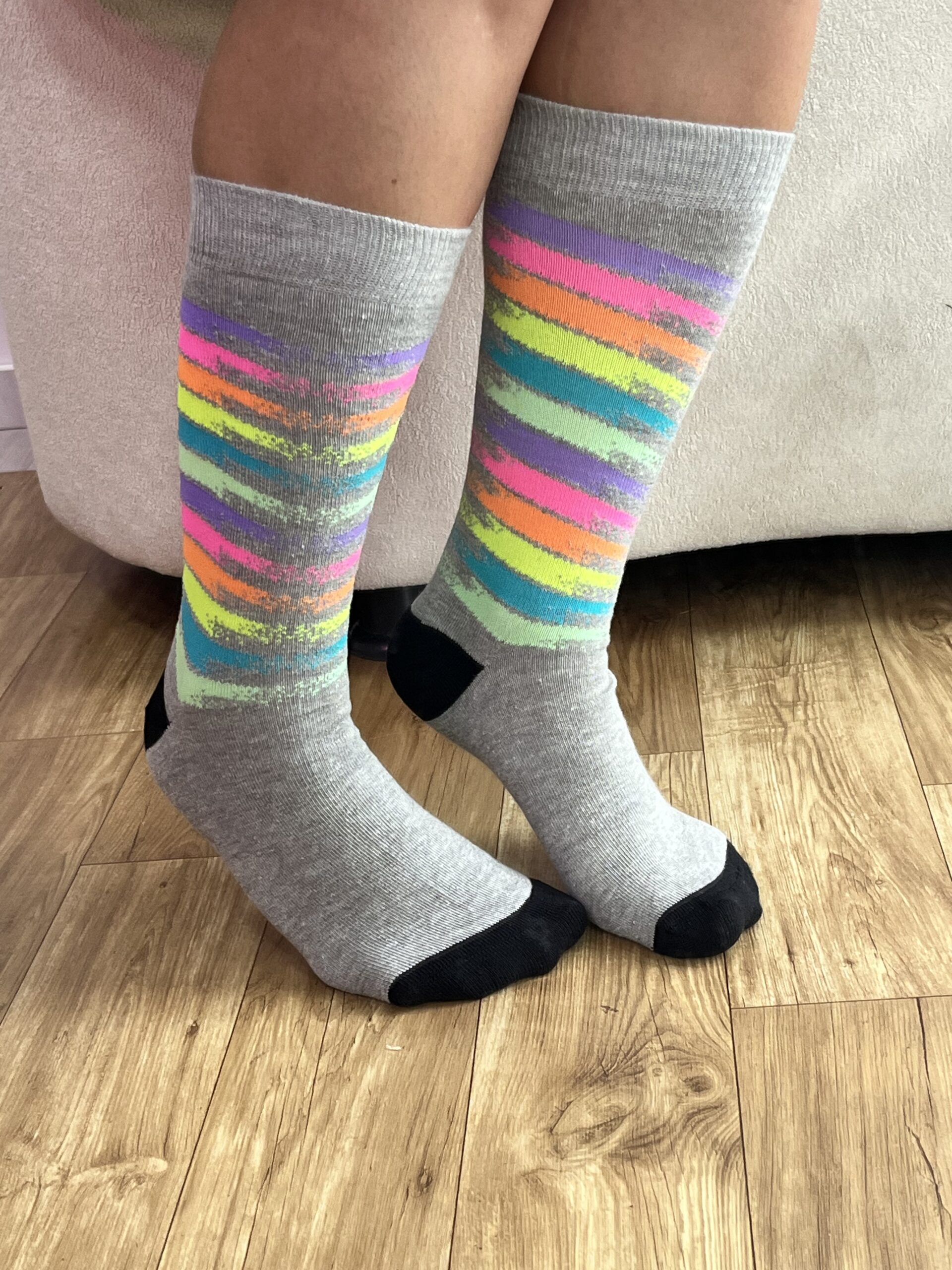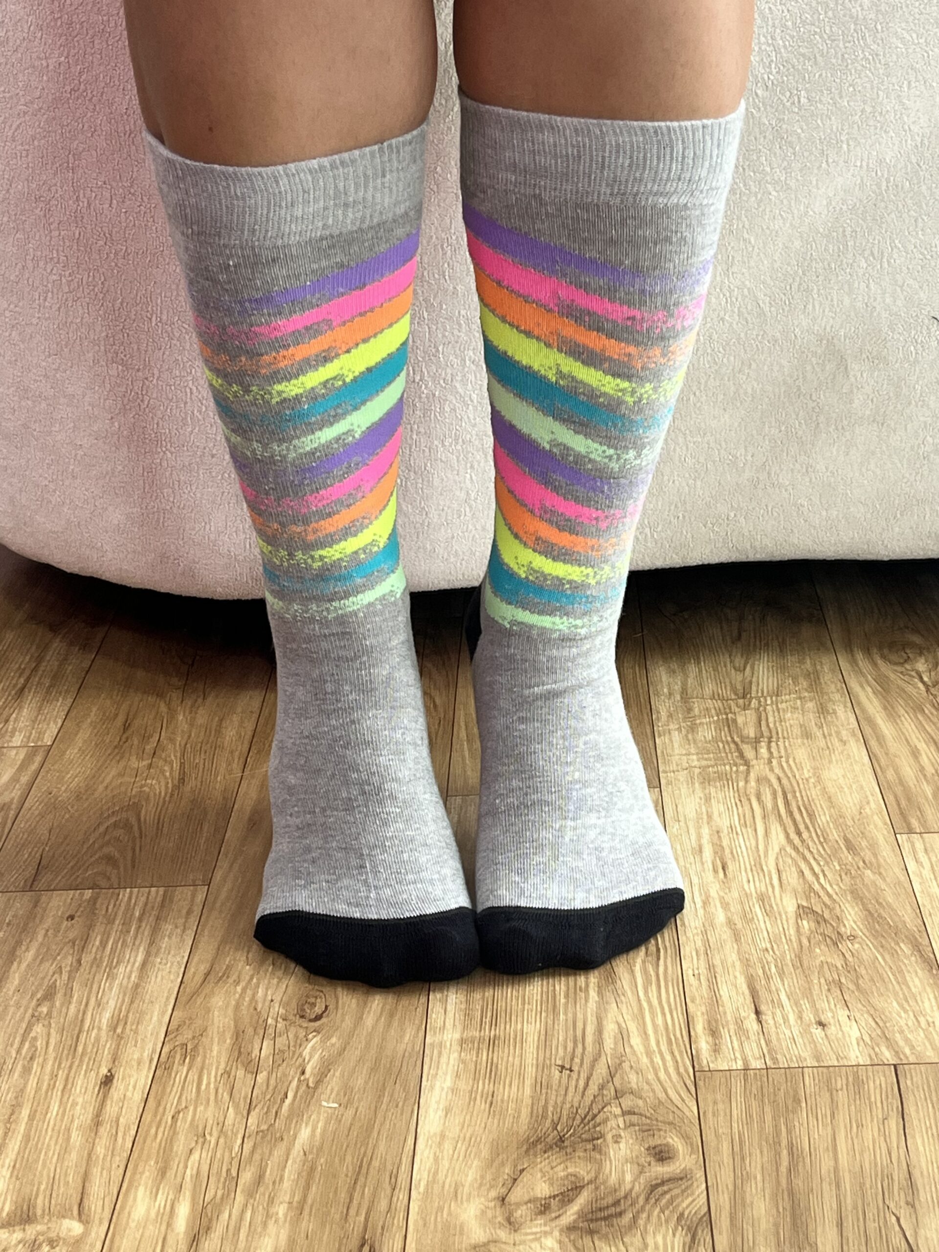 MEIA CANO LONGO ESTAMPADO CINZA