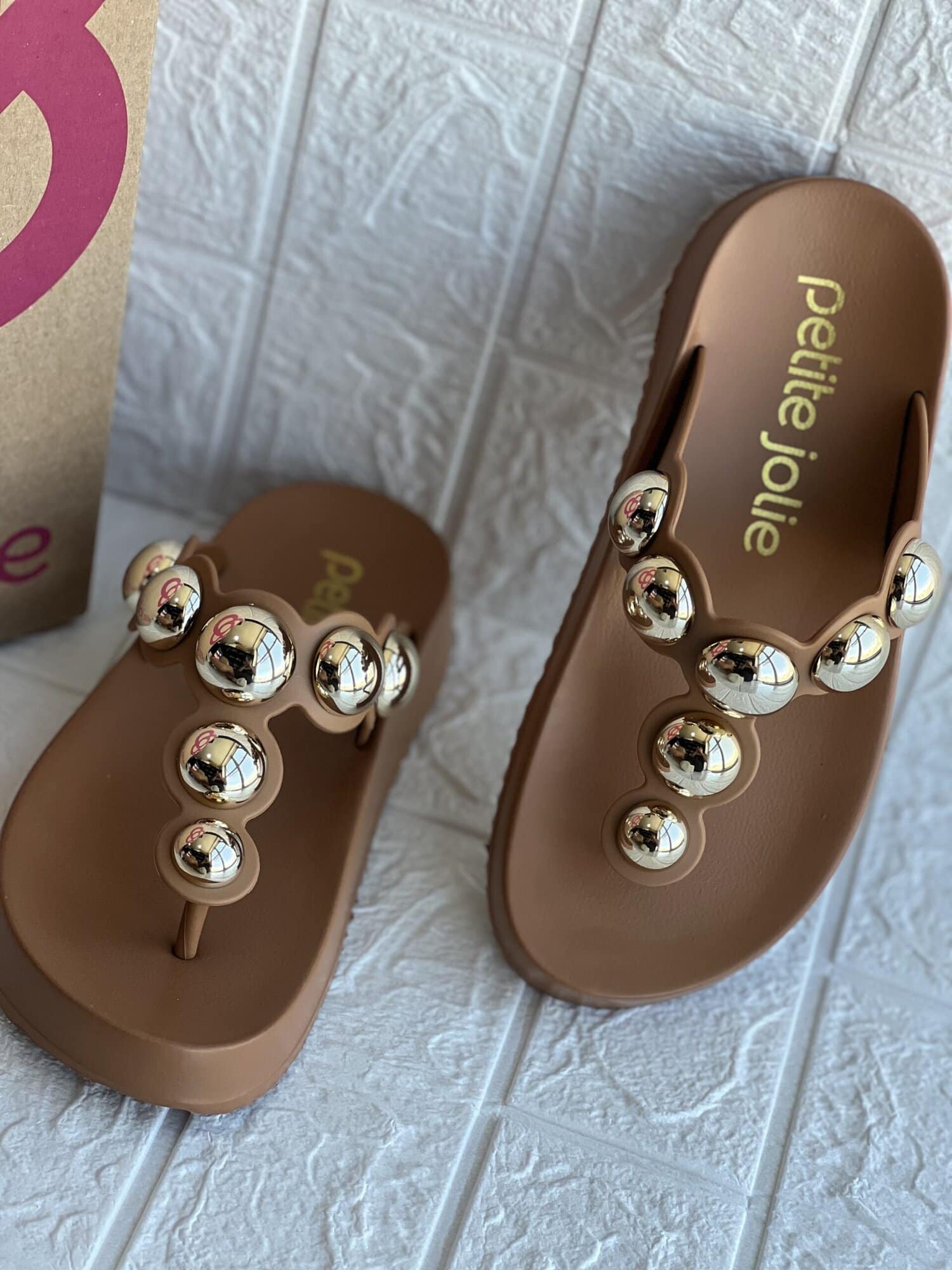 O modelo conta com aplicações de esferas metalizadas, trazendo um ar maximalista e moderno ao calçado, sem deixar o conforto de lado. É produzida em J-Lastic, com palmilha em J-Flow, levemente anatômica, macia e confortável.