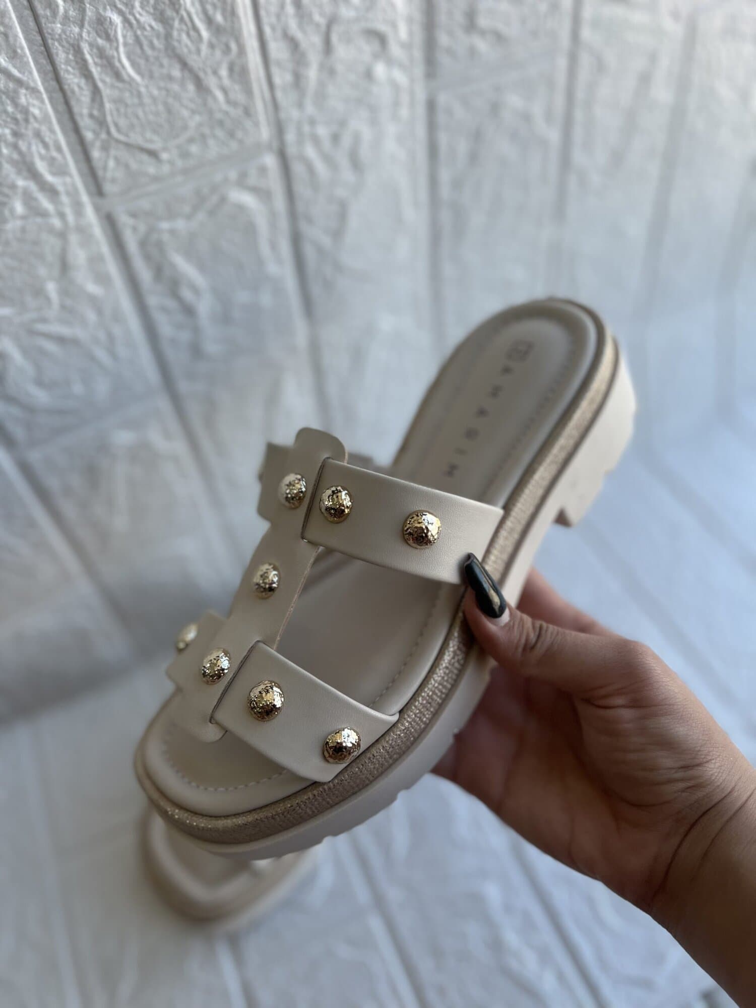 Chegue com estilo e conforto nesta temporada com nossos chinelos plataforma, um verdadeiro must-haver do verão! Com design moderno e sofisticado, apresentam salto Anabela que garante estabilidade e elegância em cada passo. O acabamento com detalhes metálicos adiciona um toque de glamour e exclusividade à peça. Feitos com materiais de ótima qualidade, proporcionam conforto duradouro. Ideais para compor looks frescos, versáteis e cheios de personalidade.