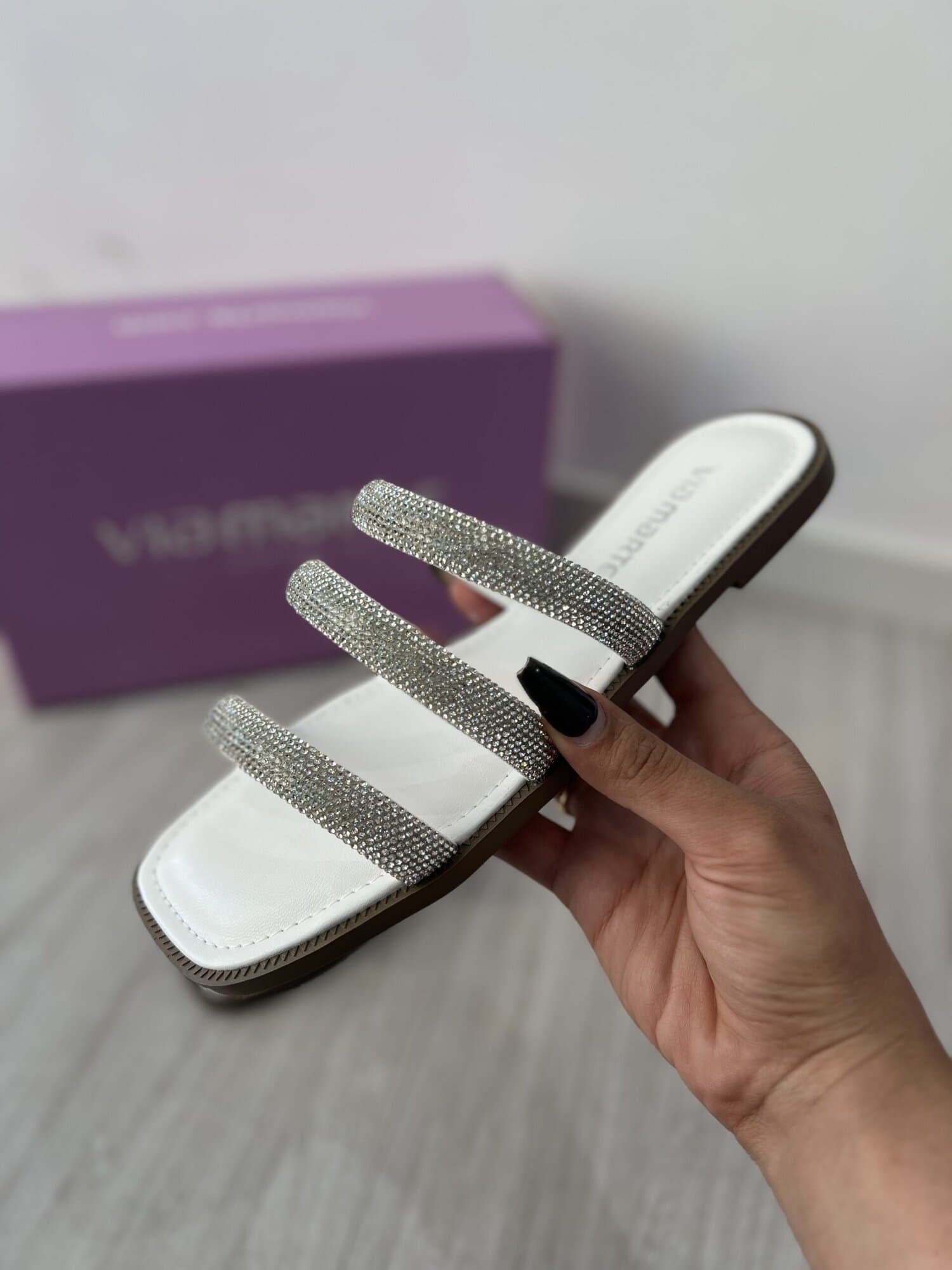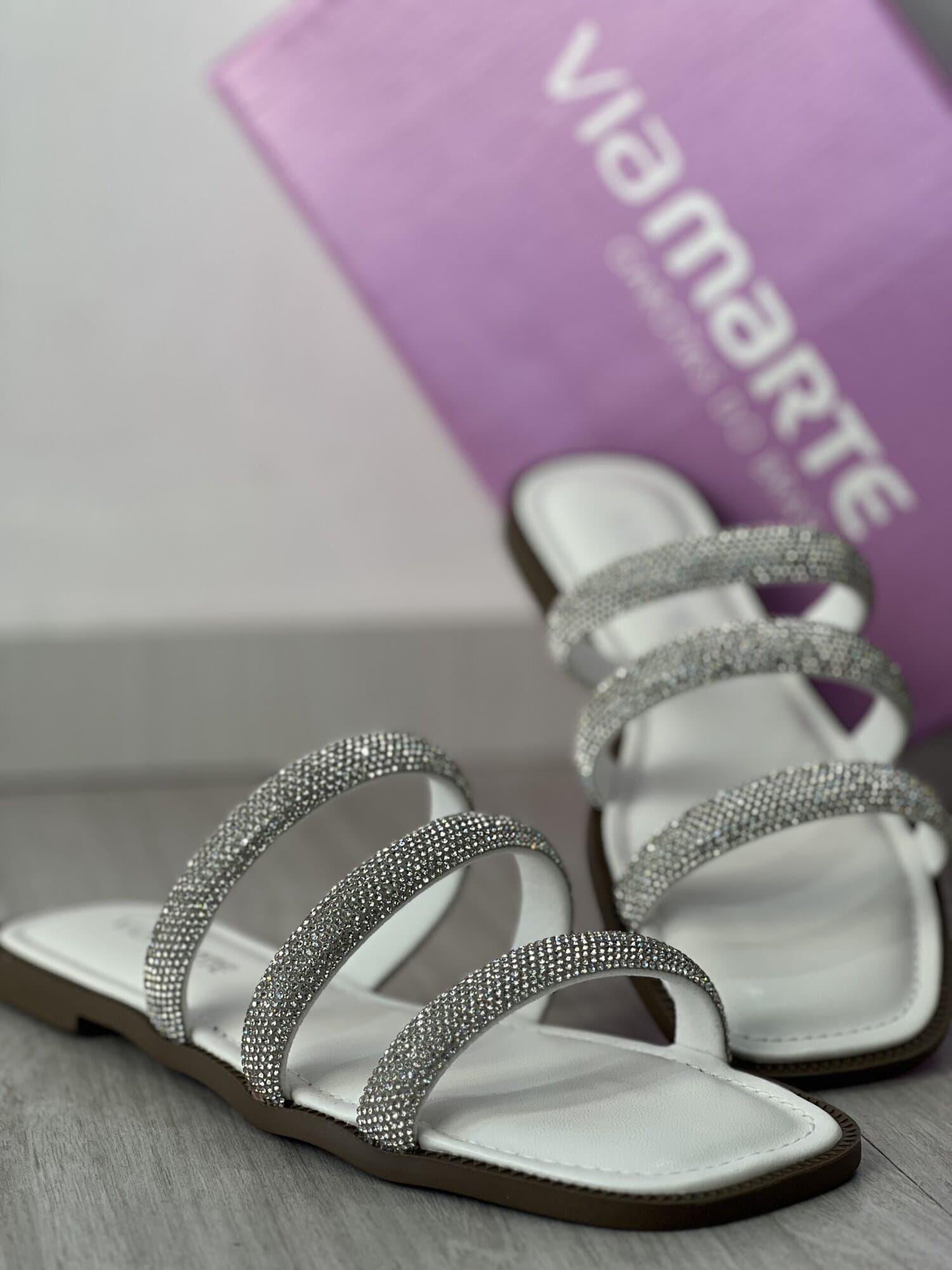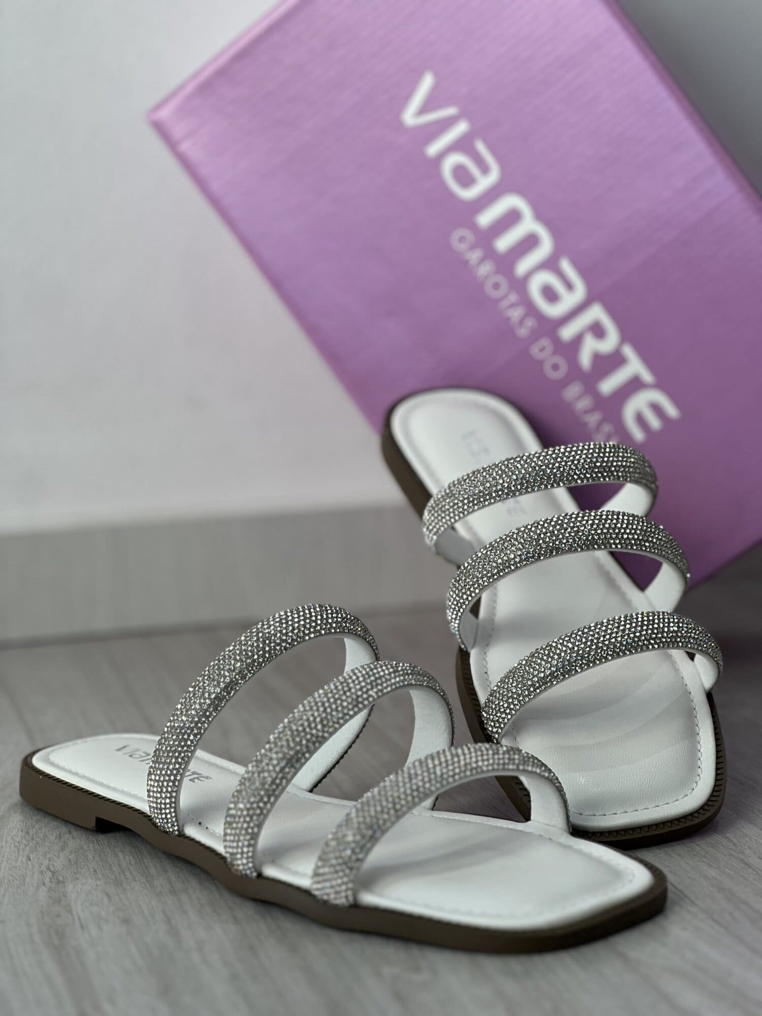 Descubra o conforto e a elegância da rasteira Via Marte. Com solado plano e bico quadrado, ela oferece o equilíbrio ideal entre estilo e bem-estar. As tiras cravejadas trazem um toque de brilho na medida certa, adicionando sofisticação sem abrir mão da leveza. Versátil e cheia de personalidade, é a escolha perfeita para elevar seus looks do dia a dia com elegância e atitude.