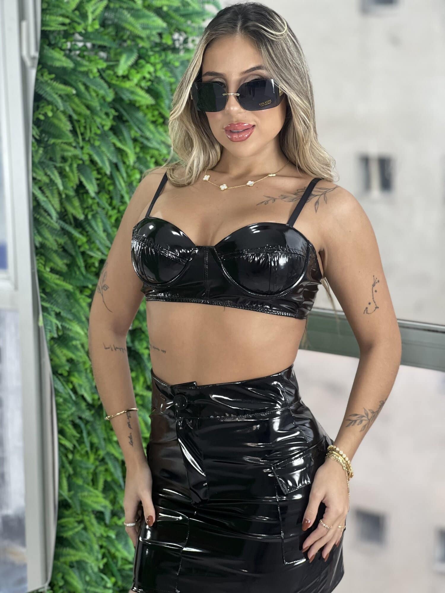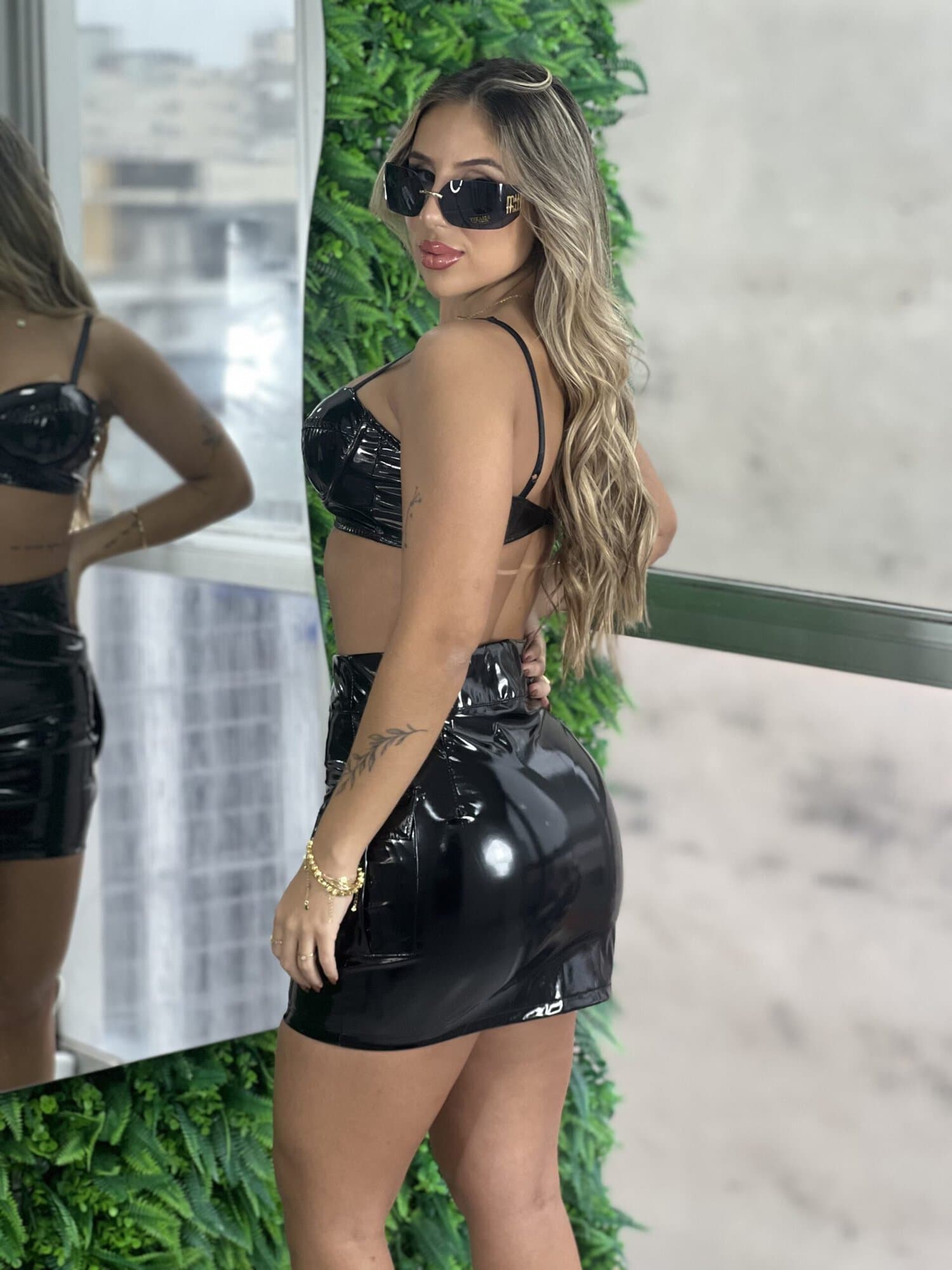 A saia de vinil Glamourosa Chic é aquela peça statement que transforma qualquer look e garante um visual moderno e cheio de confiança.