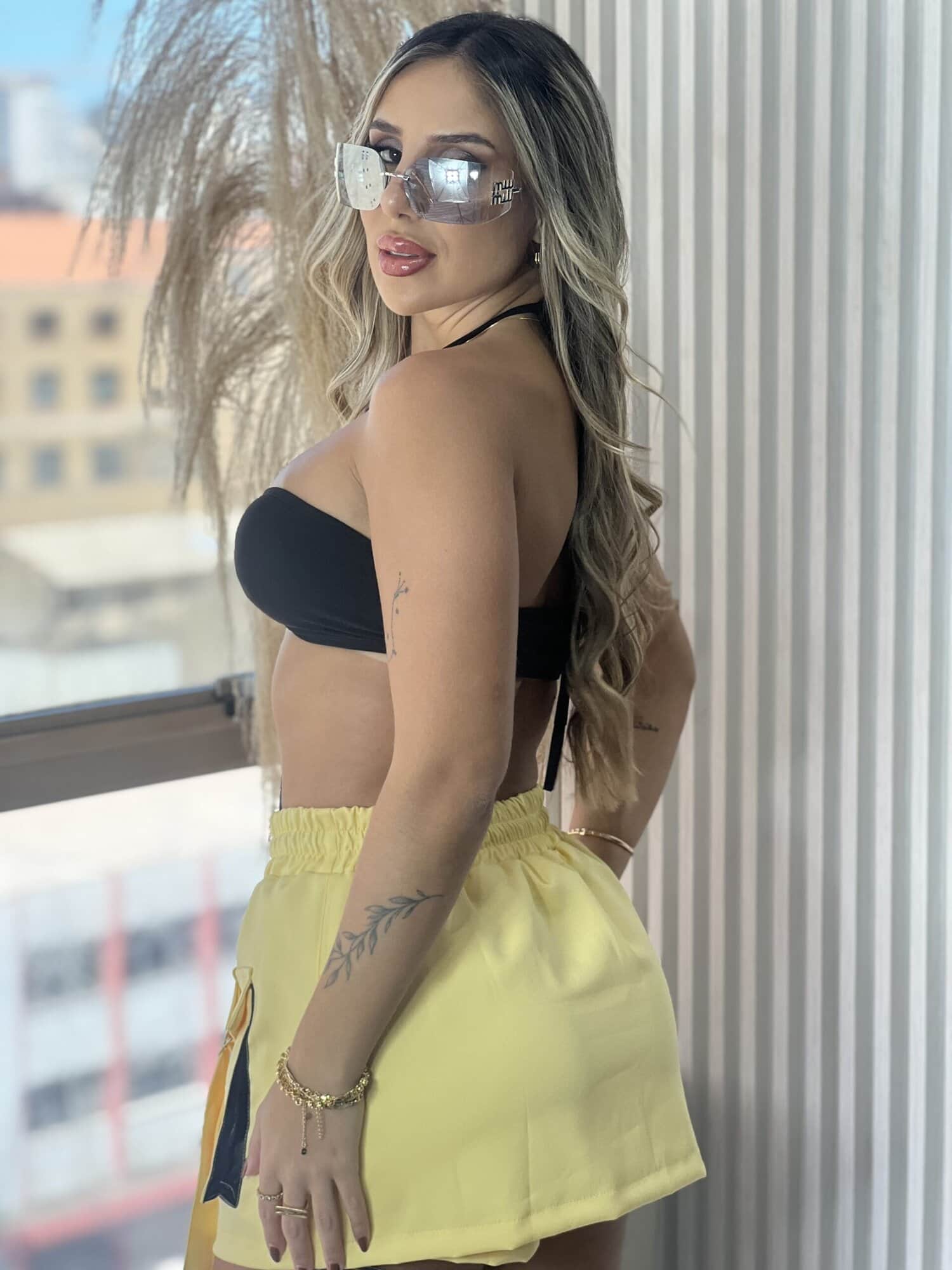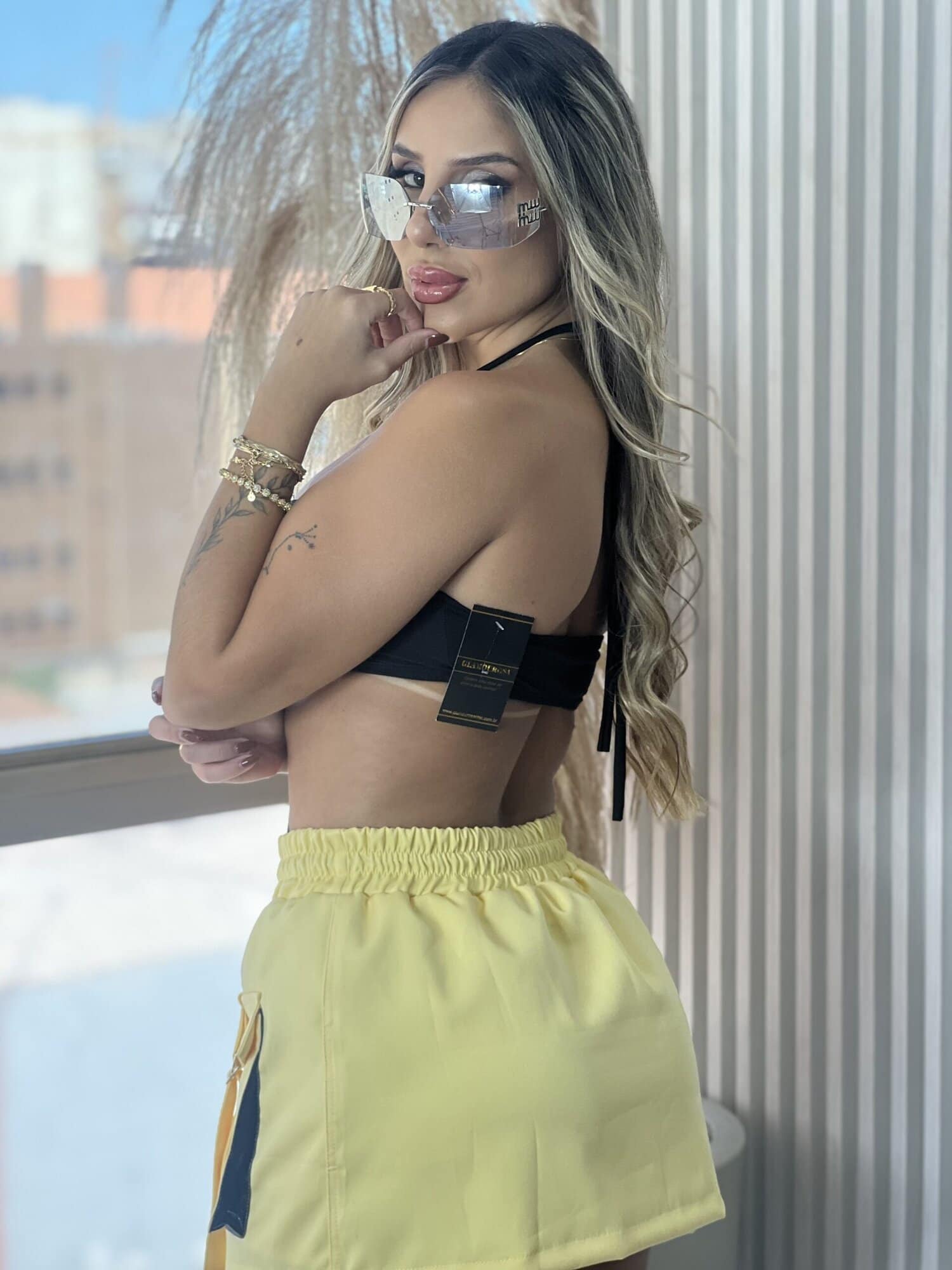 SAIA COM SHORT TAI AMARELO