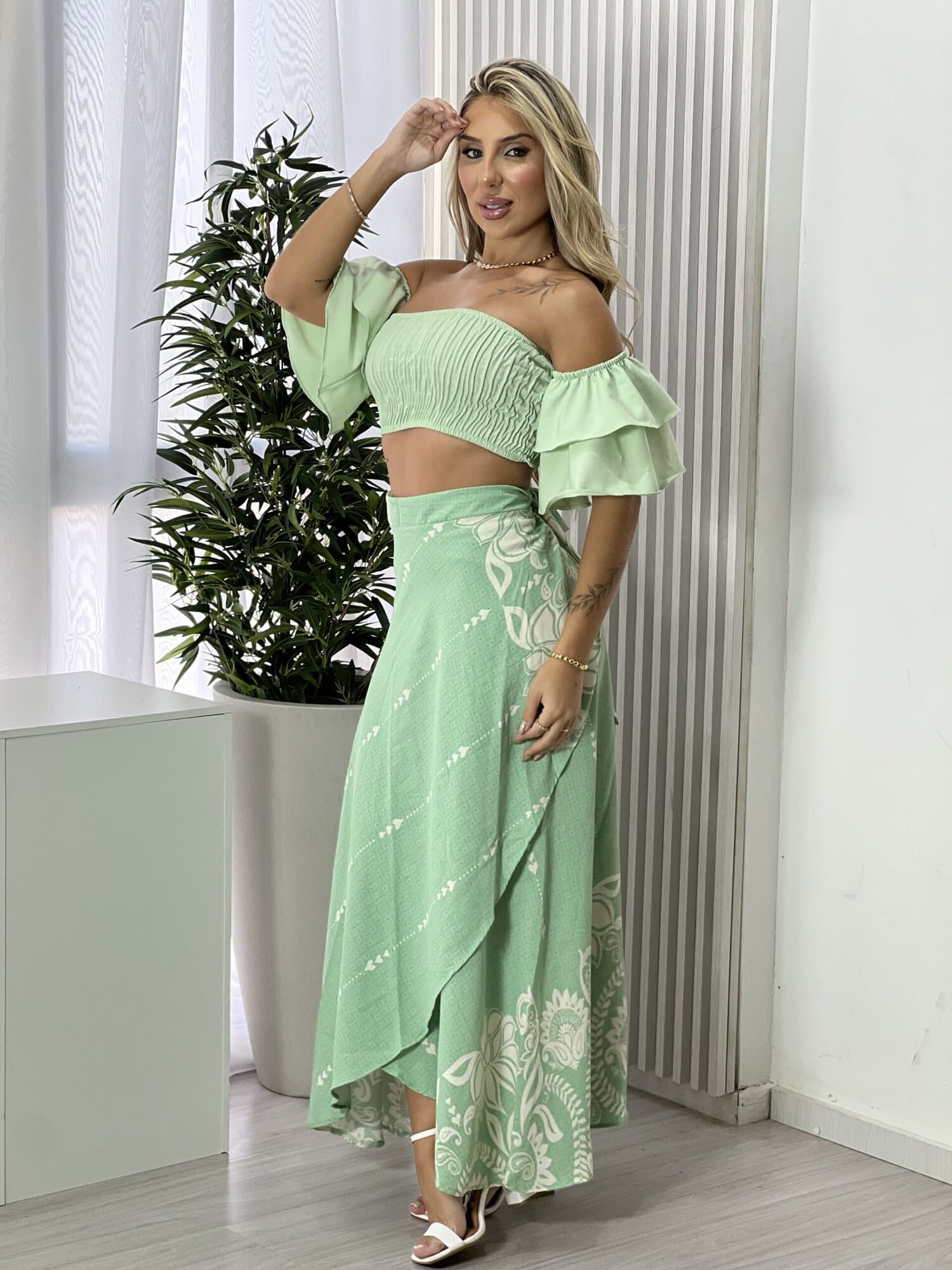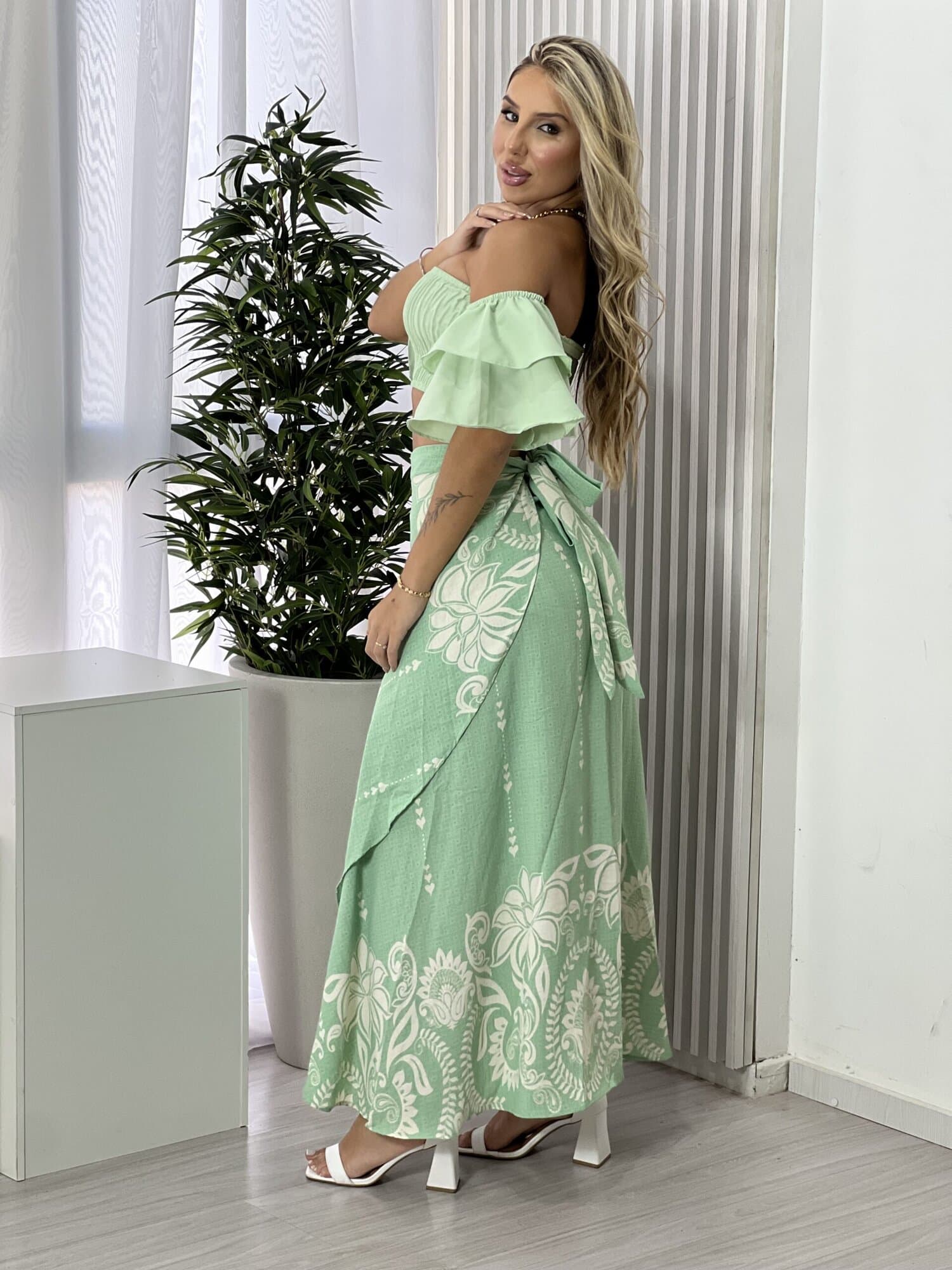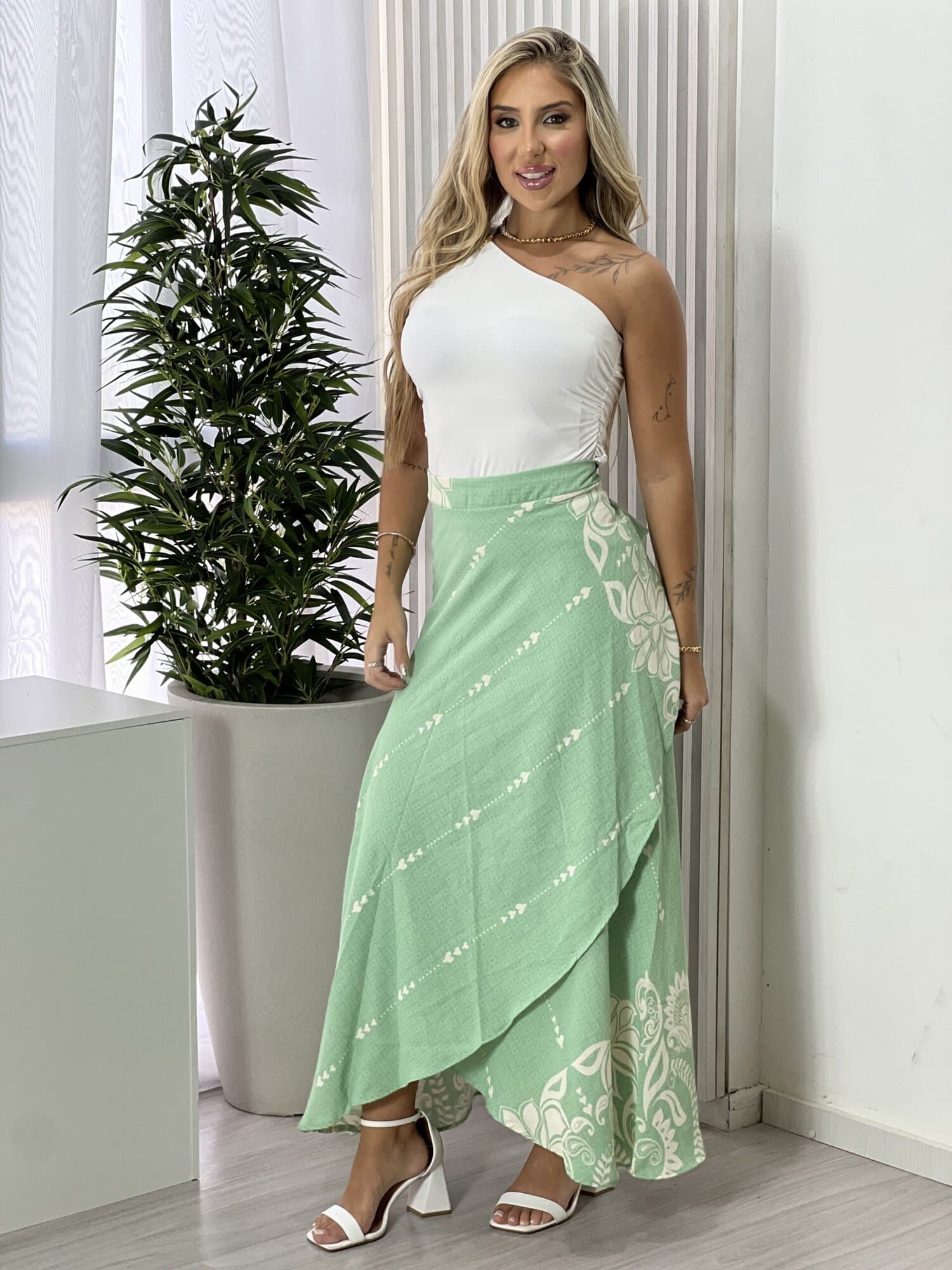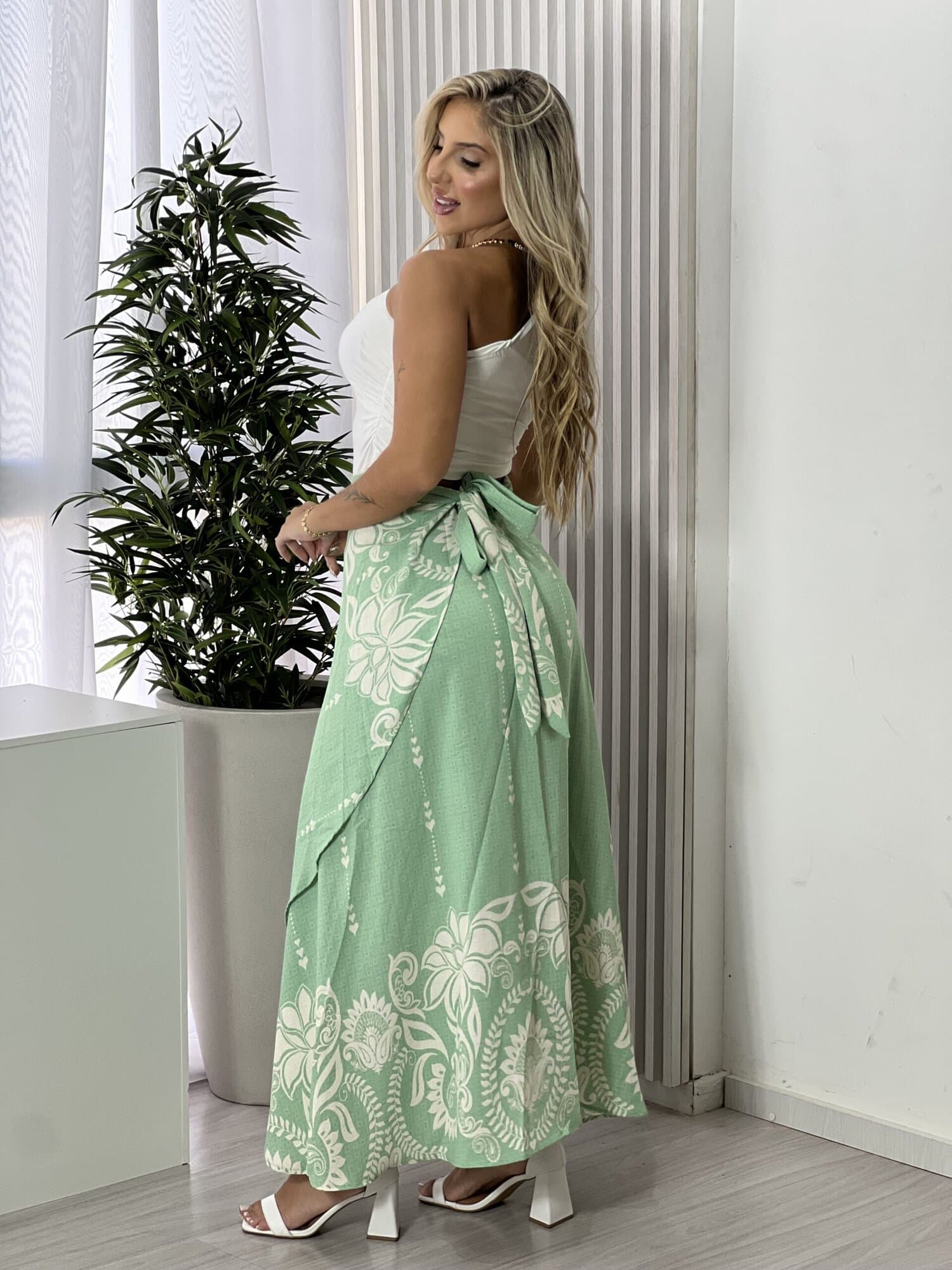 Saia envelope estampada, perfeita para quem busca estilo, conforto e versatilidade em um único look. O modelo envelope se ajusta facilmente ao corpo, valorizando a silhueta e garantindo um caimento leve e confortável. A estampa traz charme e personalidade à peça, tornando-a ideal para compor desde produções casuais do dia a dia até looks mais arrumados para passeios, eventos ou jantares. Fácil de combinar com blusas, croppeds ou camisas, é aquela peça curinga que não pode faltar no guarda-roupa. Aposte e garanta um visual moderno, feminino e atemporal.