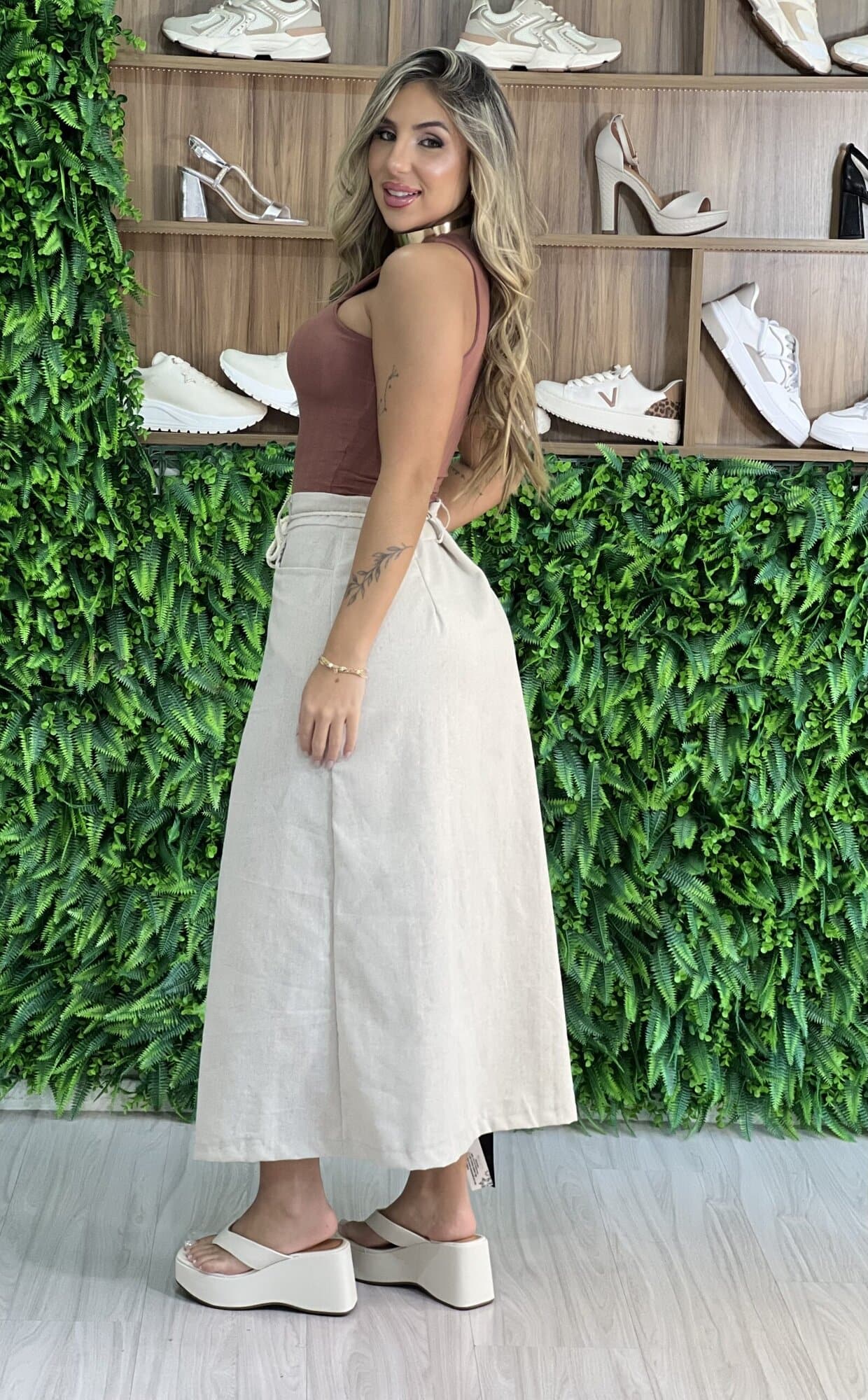 SAIA MIDI COM CINTO ALEXANDRINA BEGE