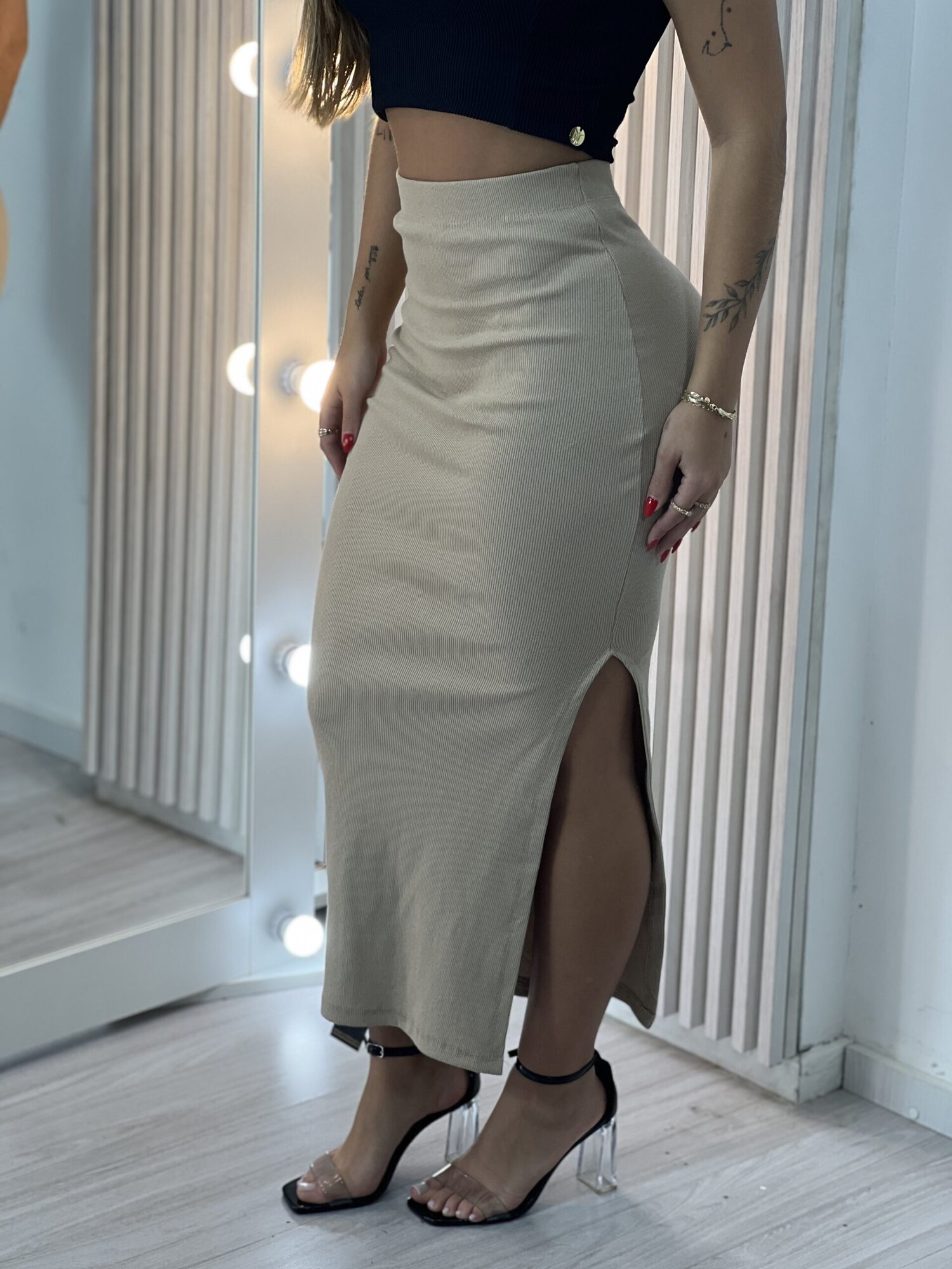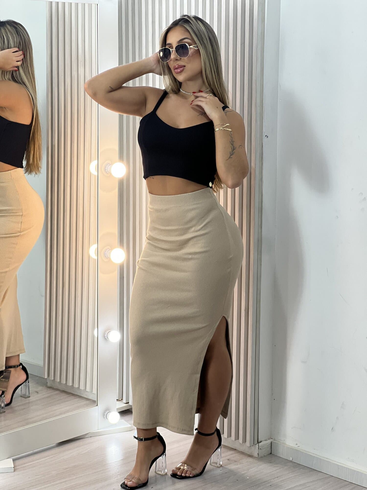 O modelo saia Midi Pétra, é justo e tem caimento perfeito no corpo. Versátil, traz um visual sensual e moderno ao look. Aposte no modelo com rasteiras, sandálias e até mesmo tênis.