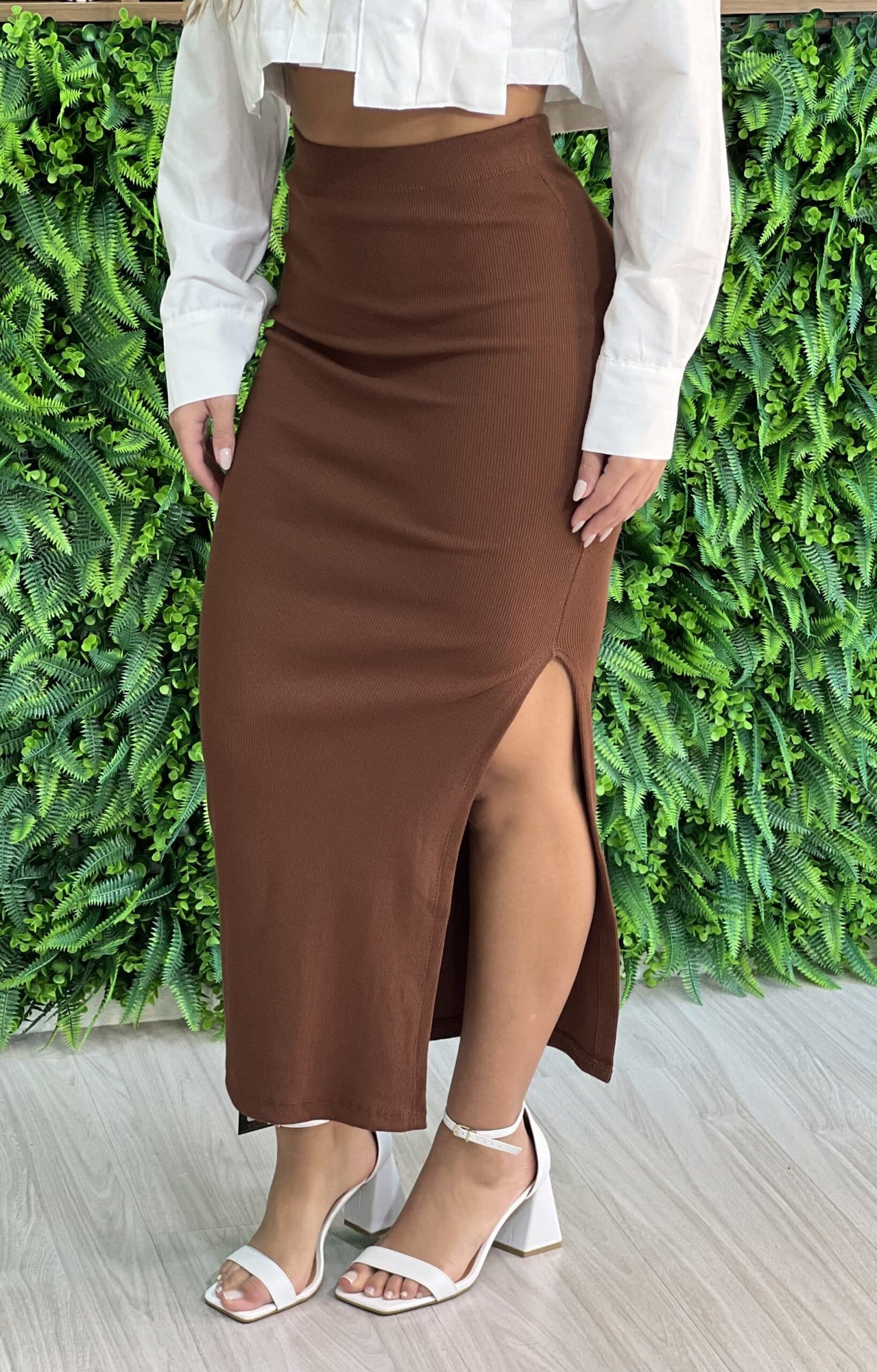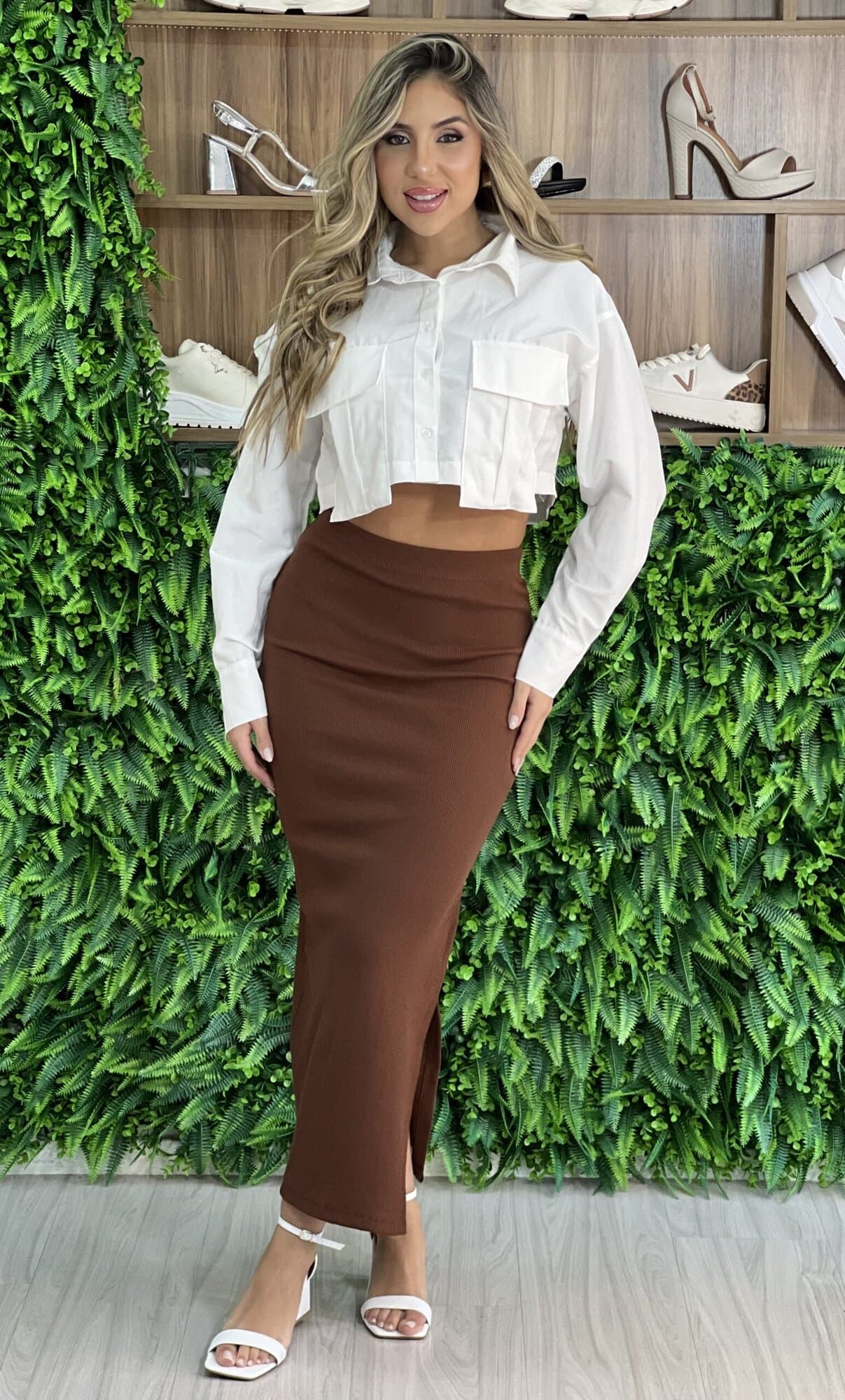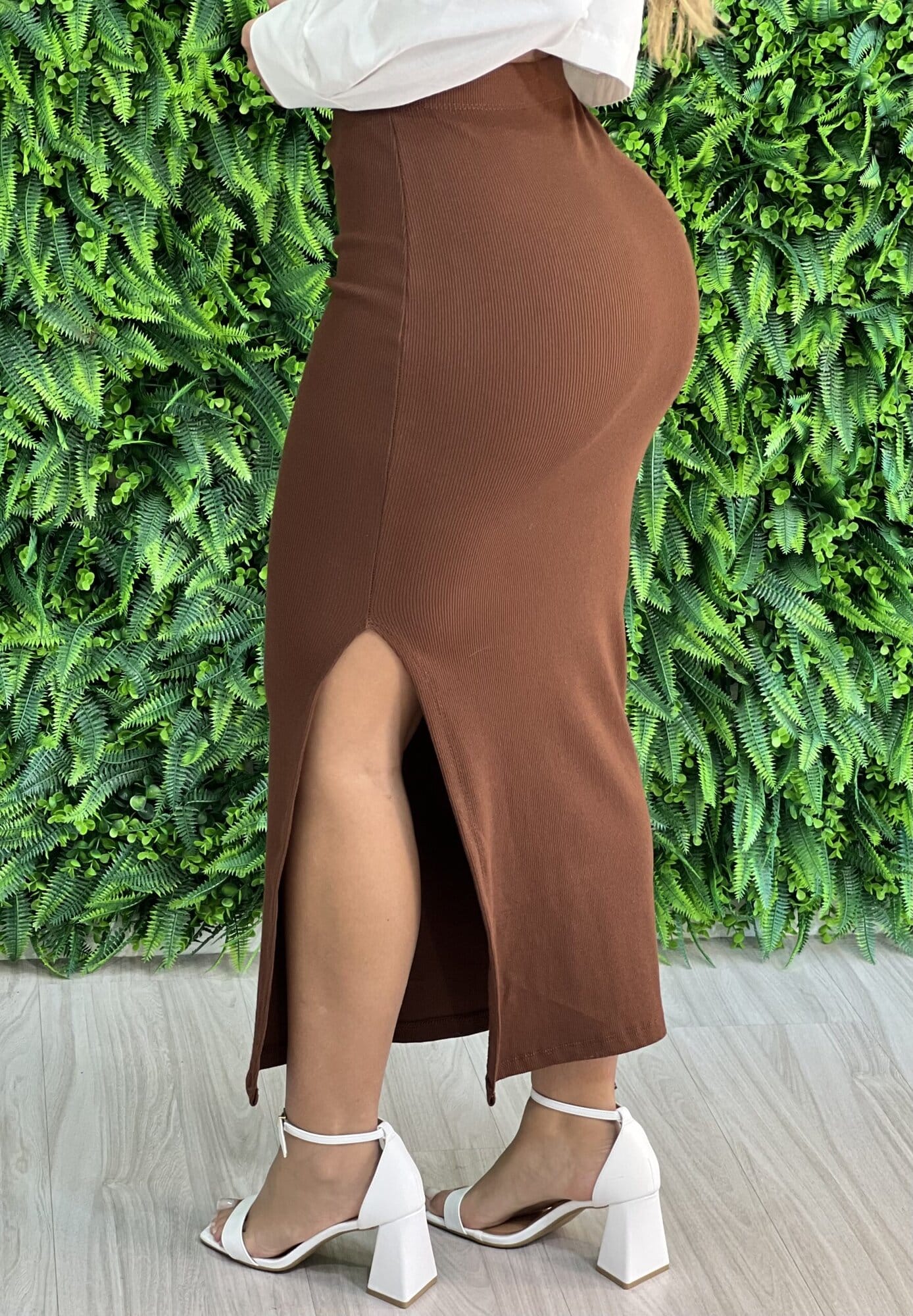 O modelo saia Midi Pétra, é justo e tem caimento perfeito no corpo. Versátil, traz um visual sensual e moderno ao look. Aposte no modelo com rasteiras, sandálias e até mesmo tênis.