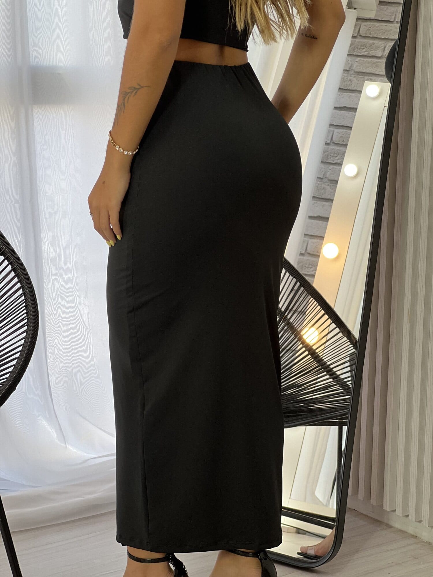 O modelo saia Midi Renata, é justo e tem caimento perfeito no corpo. Versátil, traz um visual sensual e moderno ao look. Aposte no modelo com rasteiras, sandálias e até mesmo tênis.