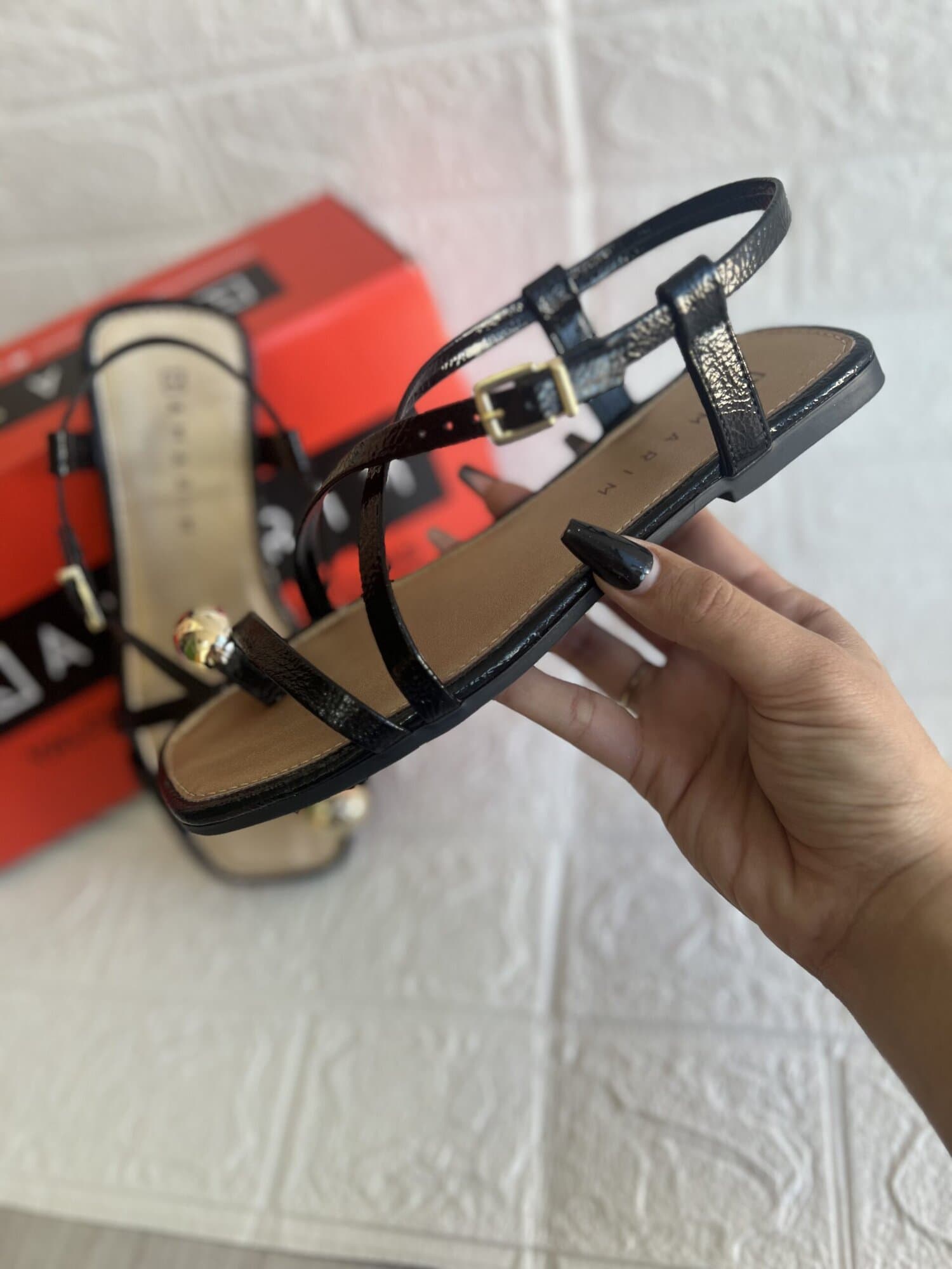 - rasteira verniz glam plus preto;