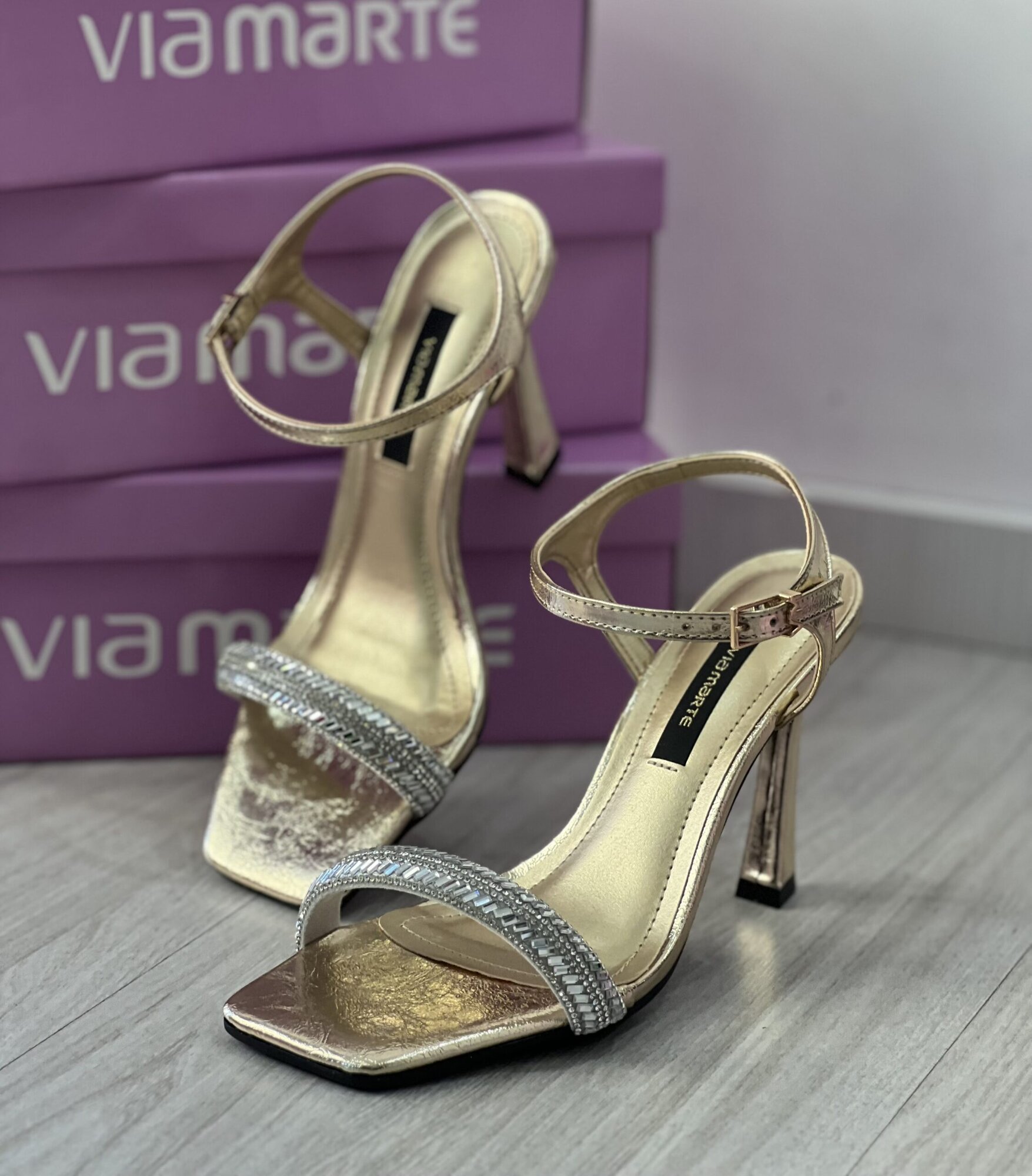 SANDÁLIA STRASS SALTO FINO DOURADO VIA MARTE 298 001 01