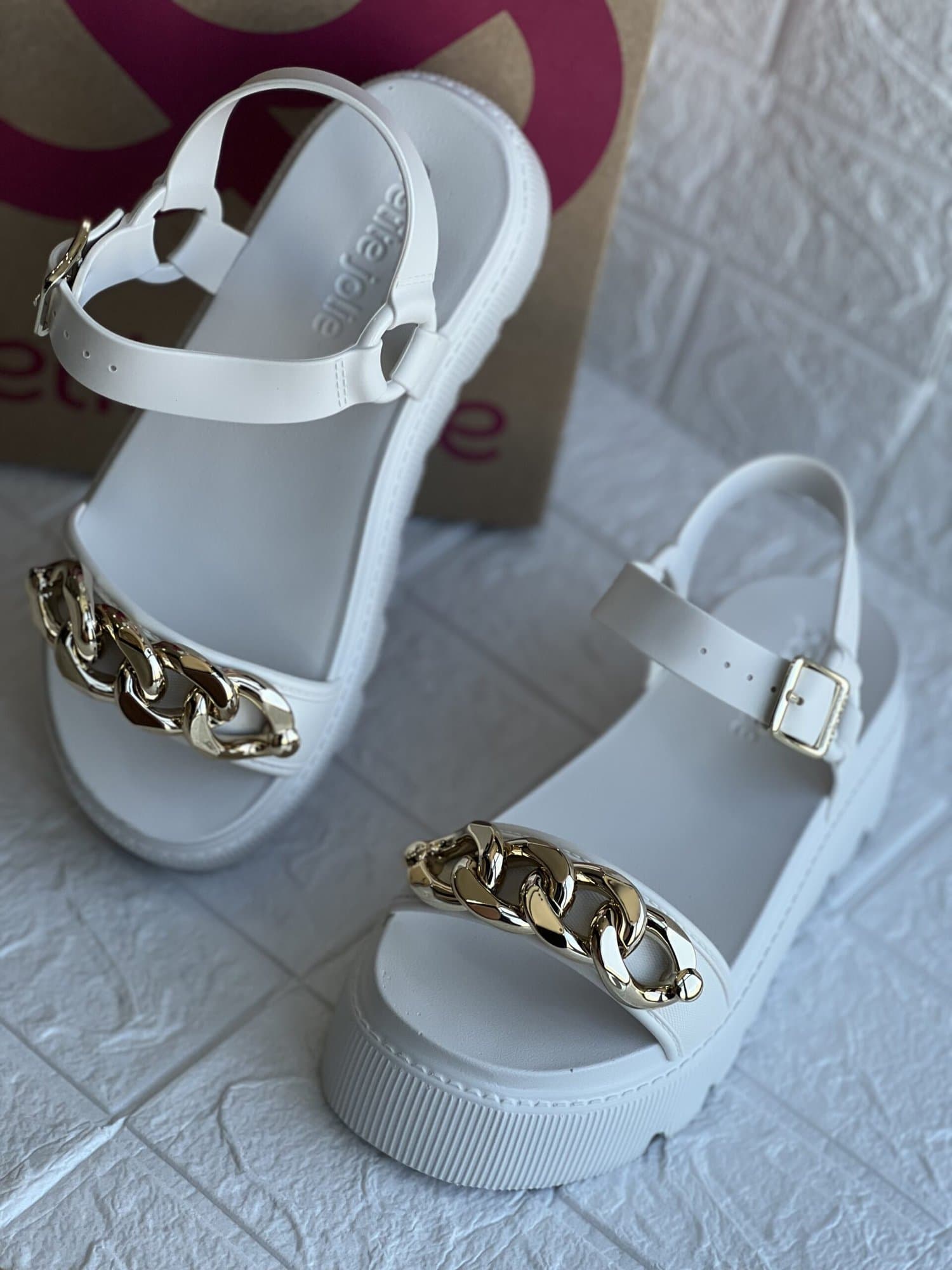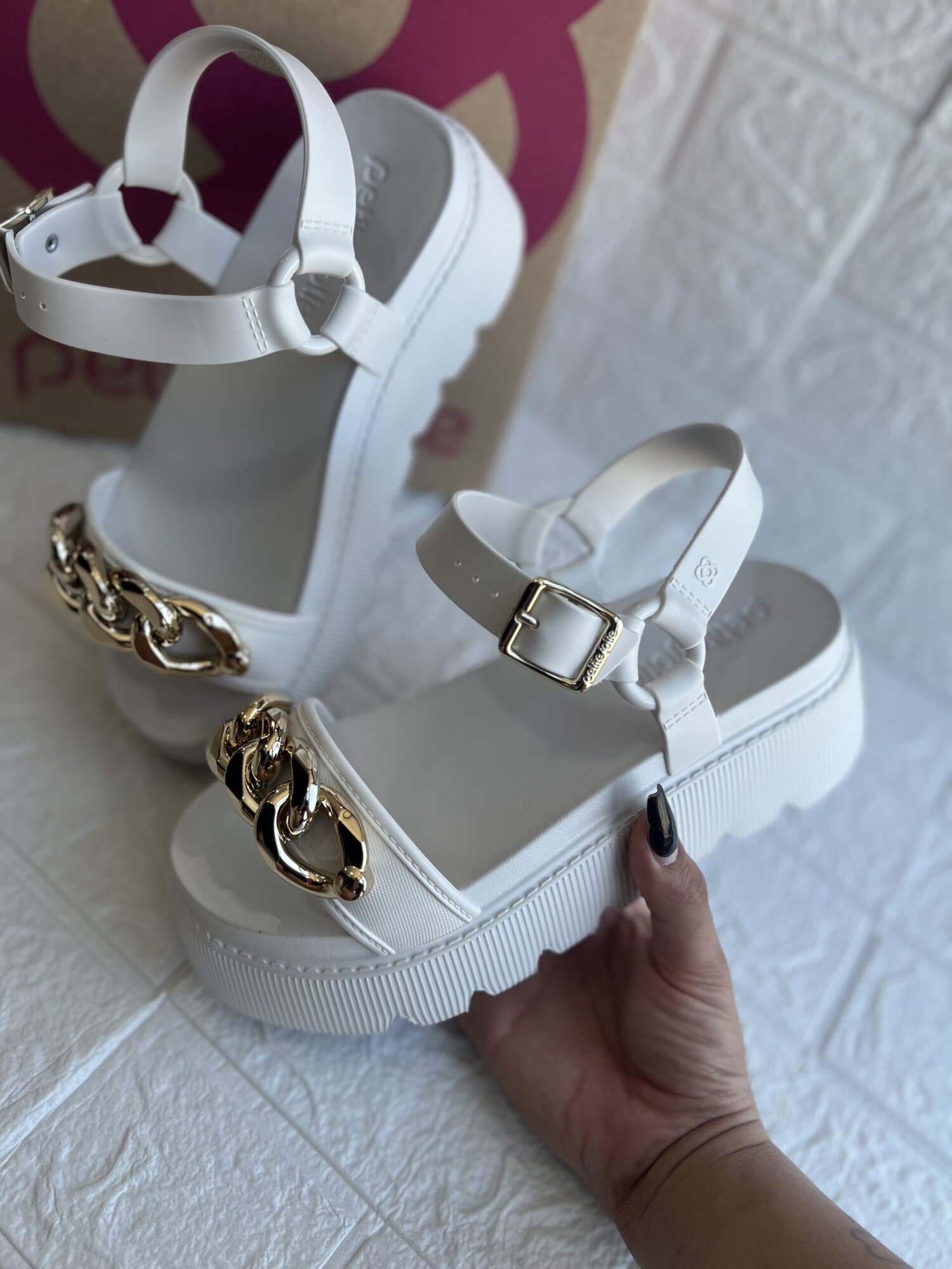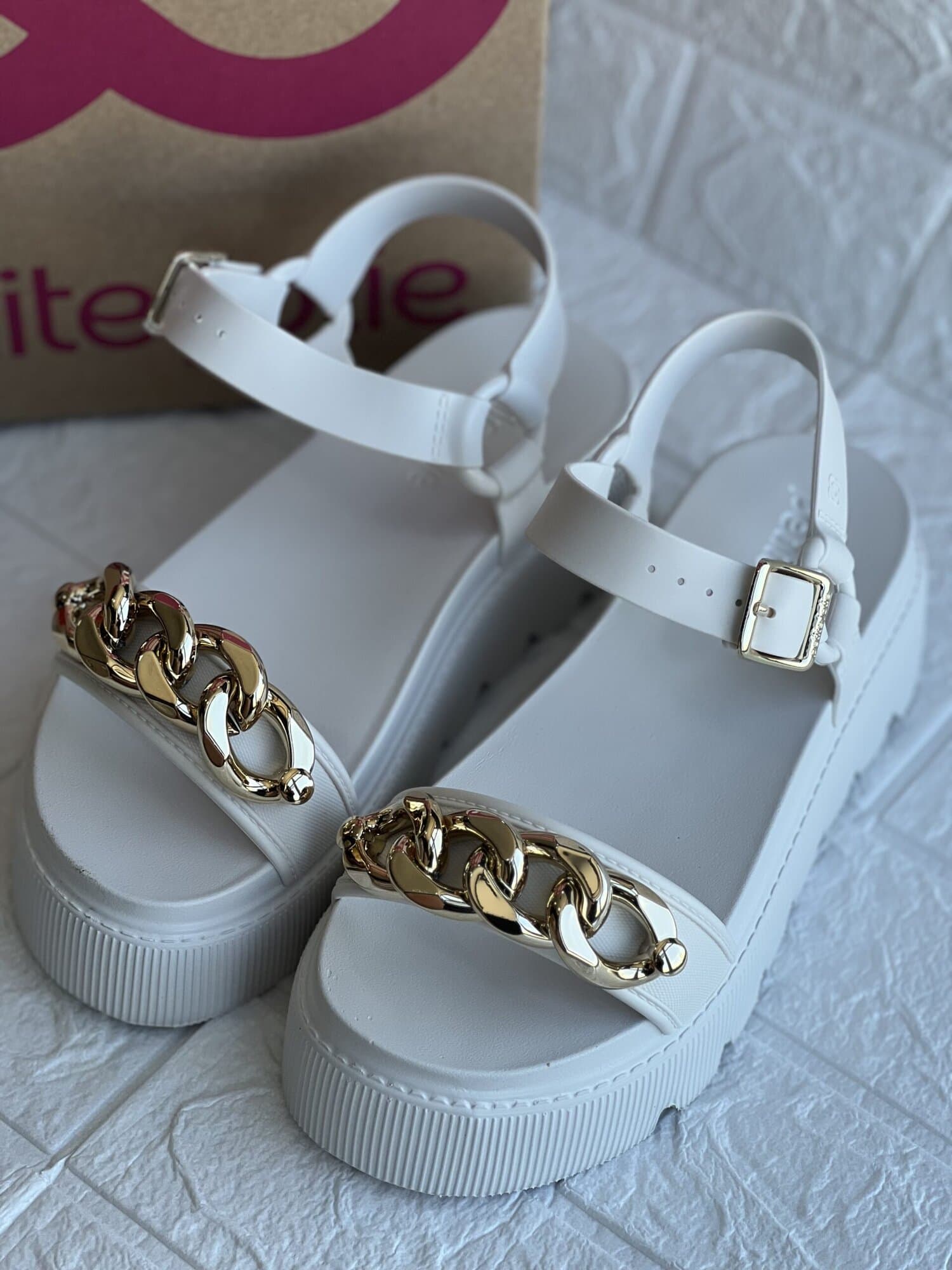 Alerta de lançamento: sandália Wish! O modelo conta com solado plataforma, palmilha levemente anatômica que agrega conforto e solado tratorado, trazendo ainda mais estilo. O modelo é ultraleve, possui aplicação em maxi correntes e fechamento por fivela, garantindo ajuste aos pés. É a sandália perfeita para quem busca elegância, sem abrir mão do conforto.