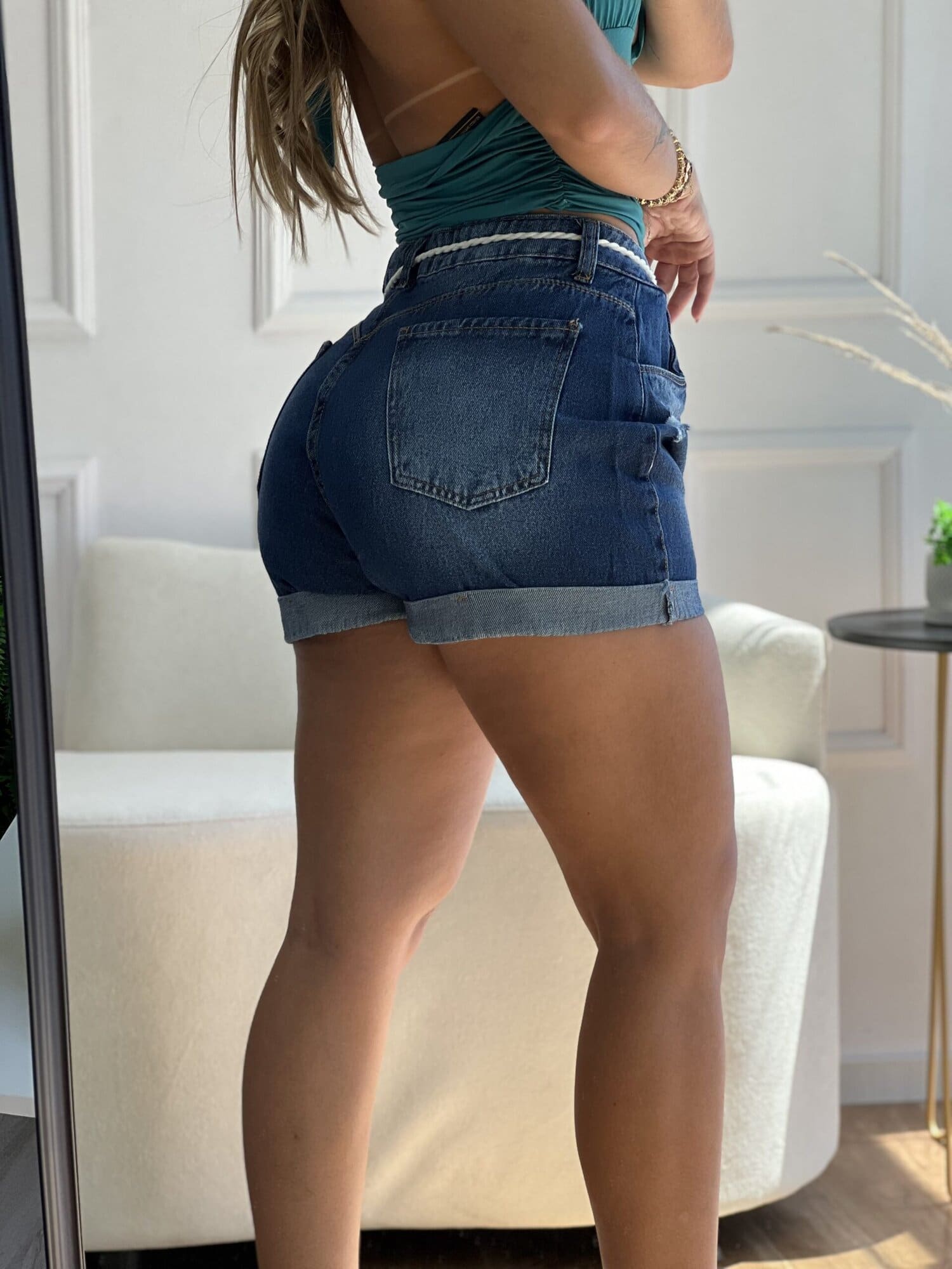 Short jeans com cintura alta, modelagem soltinha e barra dobrada. Confortável, versátil e perfeito para o dia a dia. Combine com cropped, camisa ou regata para um visual moderno e descomplicado.