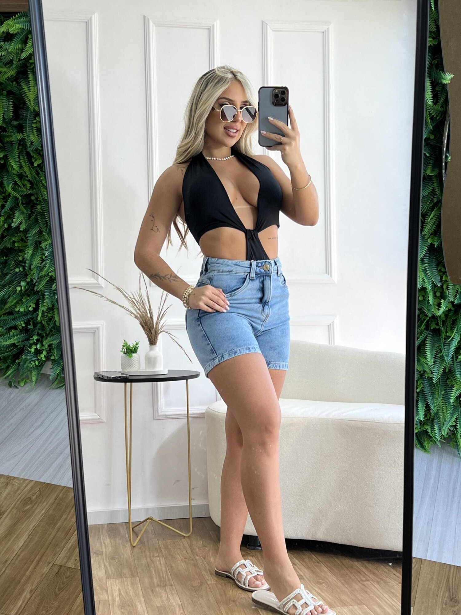 Com cintura alta e corte impecável, o short jeans Glamourosa Chic é o curinga perfeito para todas as ocasiões — confortável, estiloso e sempre atual. ????