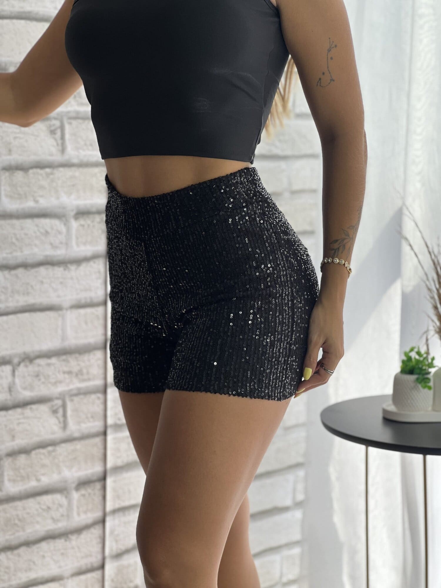 Um shortinho que é puro charme e glamour. O short em paetê traz aquele tchan pro look.
