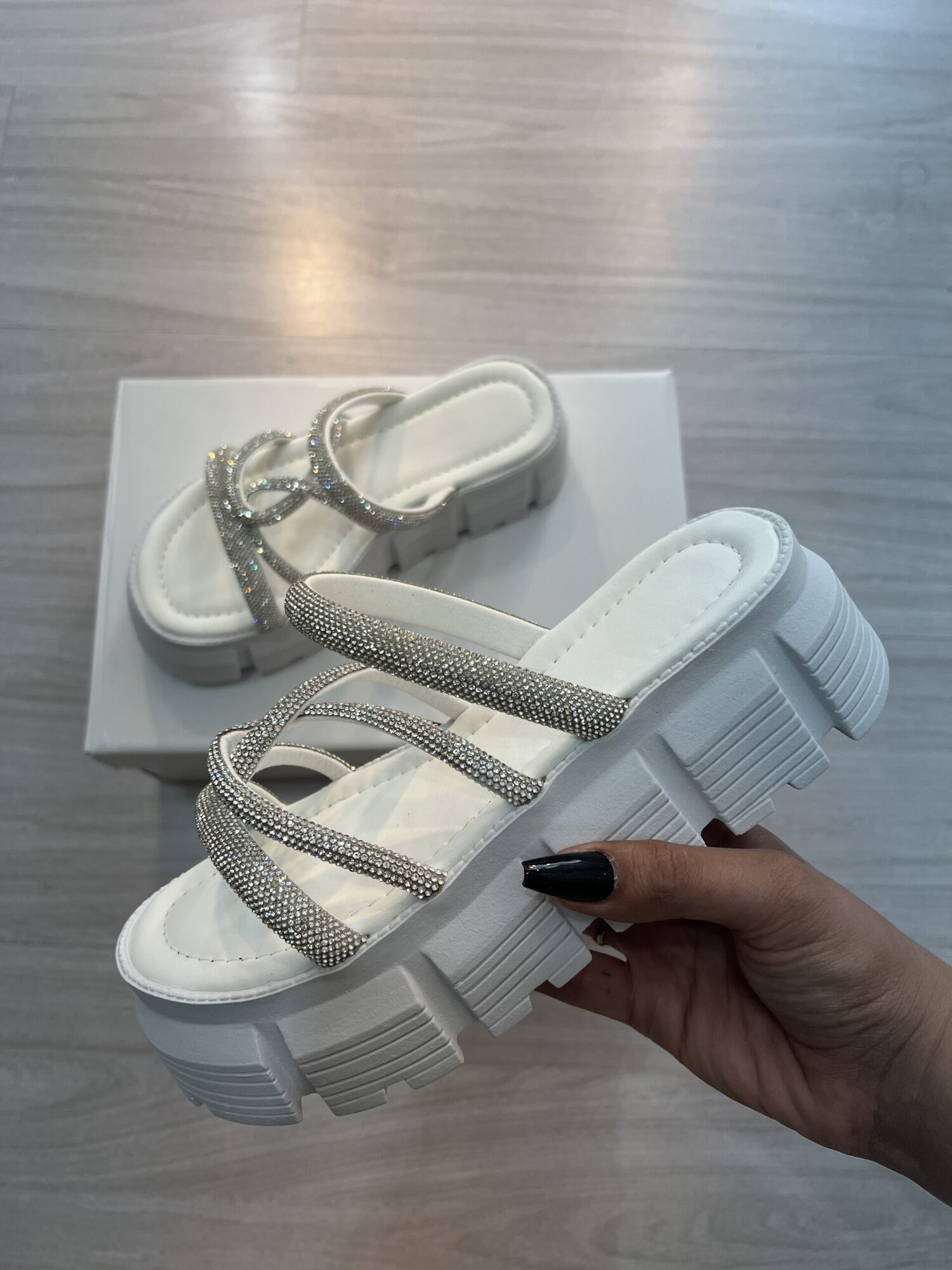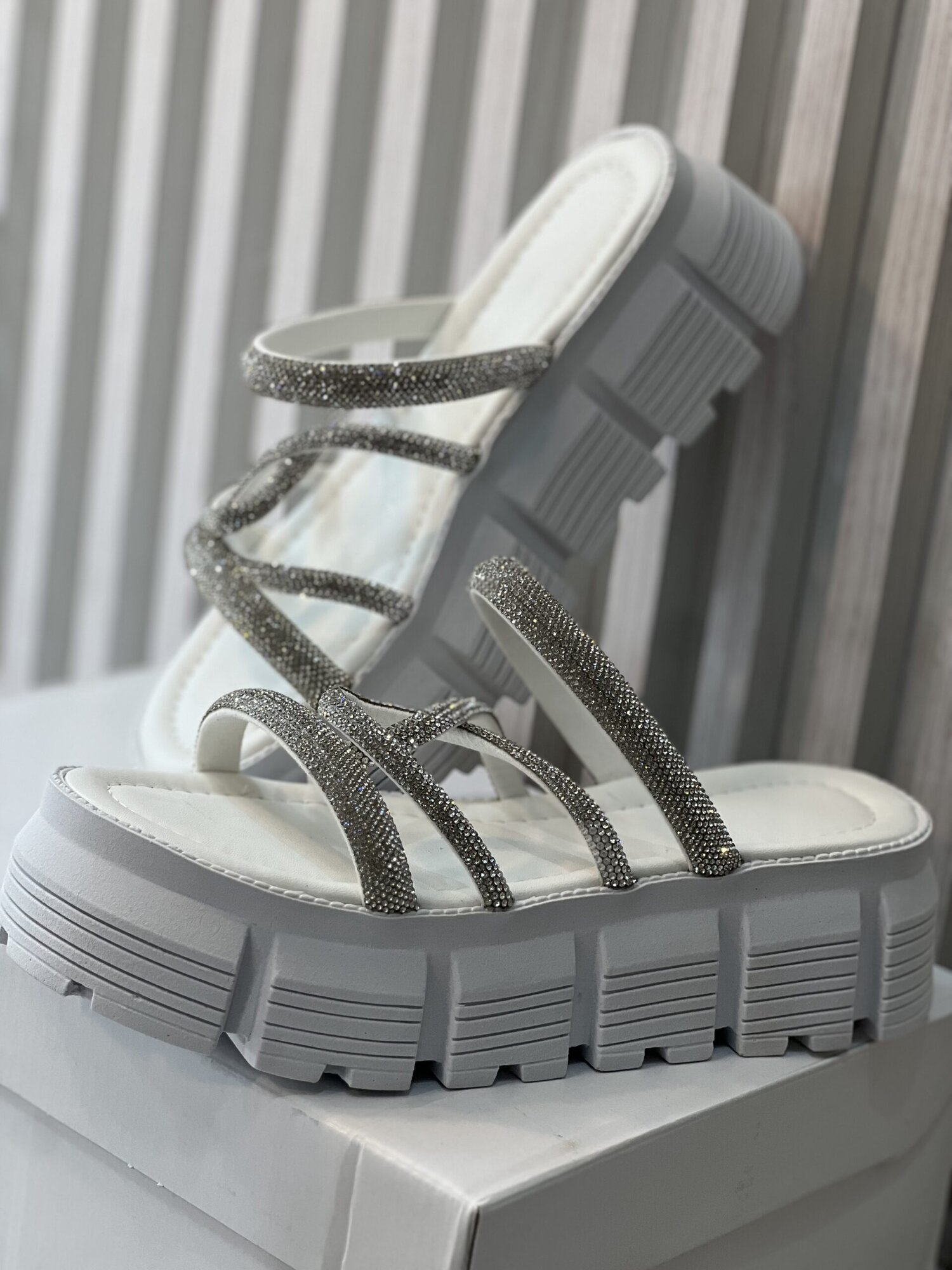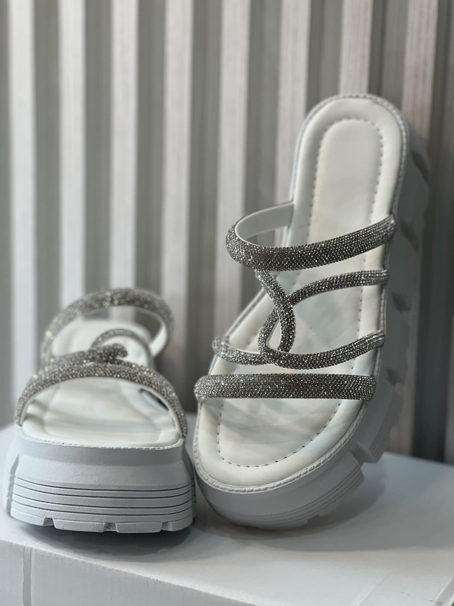 - cor branco com tiras brilhosas;