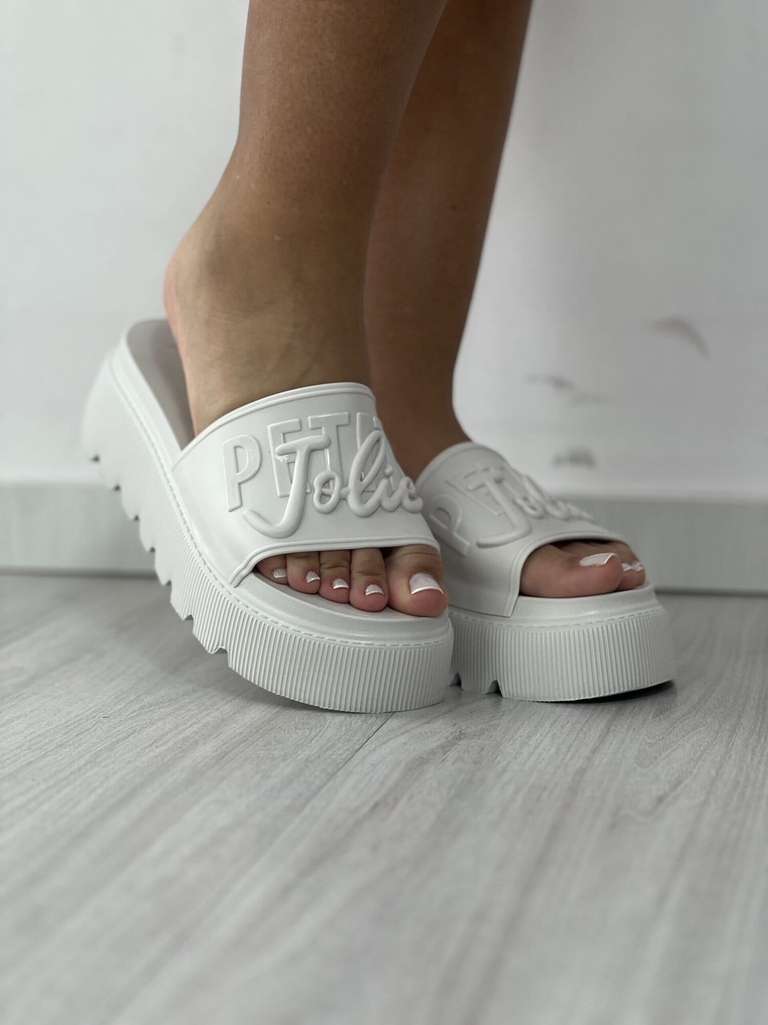 O novo slide da Petite Jolie conta com o solado de plataforma, levemente tratorado e com design esportivo. O chinelo Ray segue a tendência da logomania estilizada na única tira sobre o peito do pé. Proporciona o máximo de conforto durante todo o dia. Solado produzido em J-Flow, garantindo leveza, maciez e conforto para os pés. Garanta o seu!