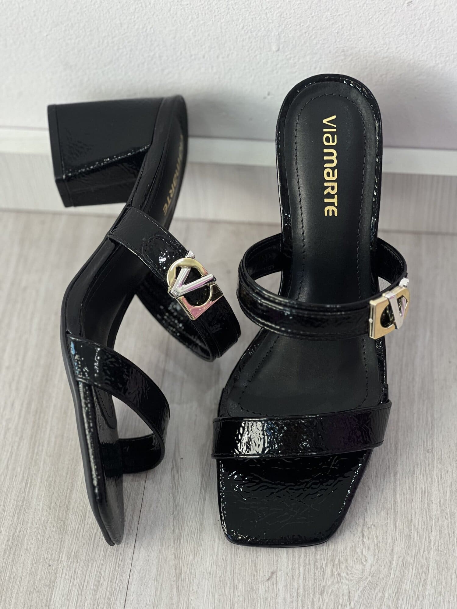 Salto bloco de 6 cm que oferece estabilidade e suporte ao caminhar. Esse modelo tem um acabamento em verniz glossy para visual elegante e fácil de combinar.