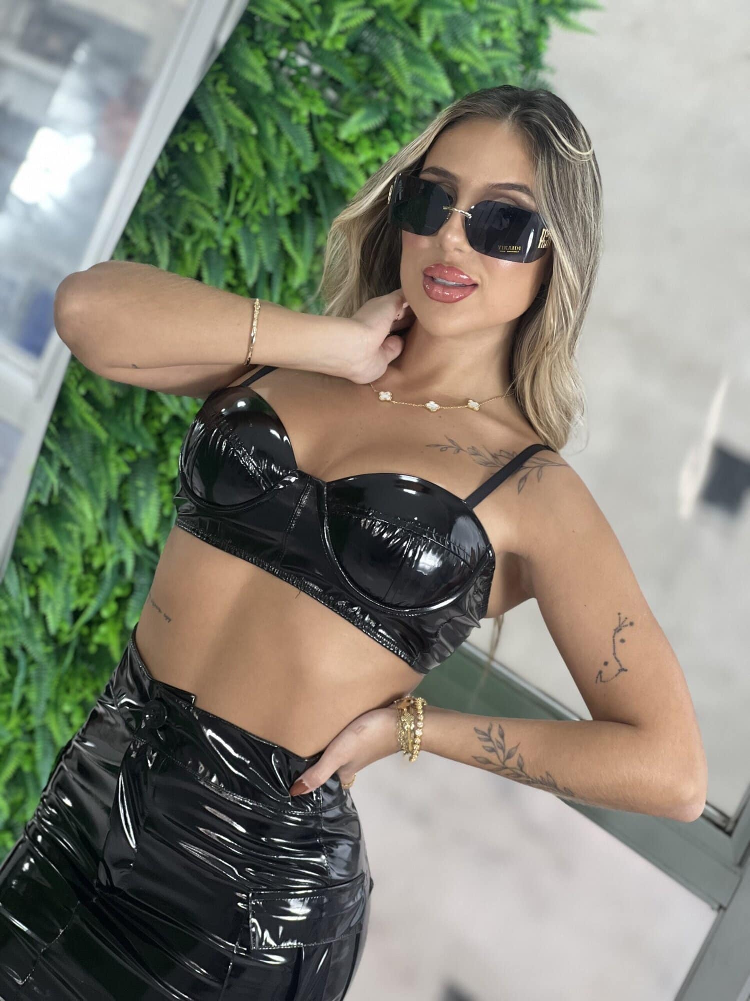 Cropped top de vinil Glamourosa Chic — brilho, atitude e estilo em uma única peça. ????