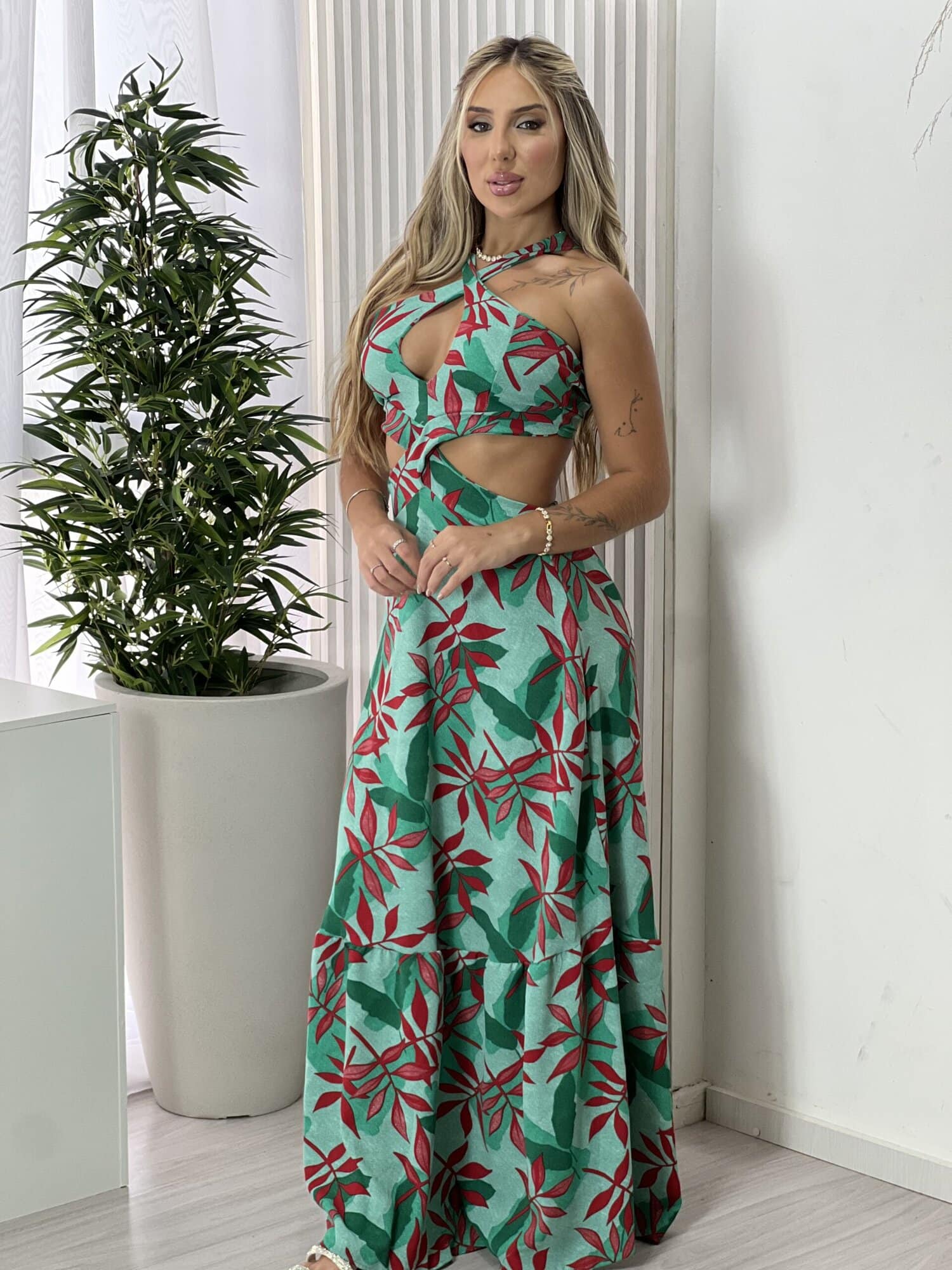 VESTIDO LONGO KAROLAINE ESTAMPADO VERDE