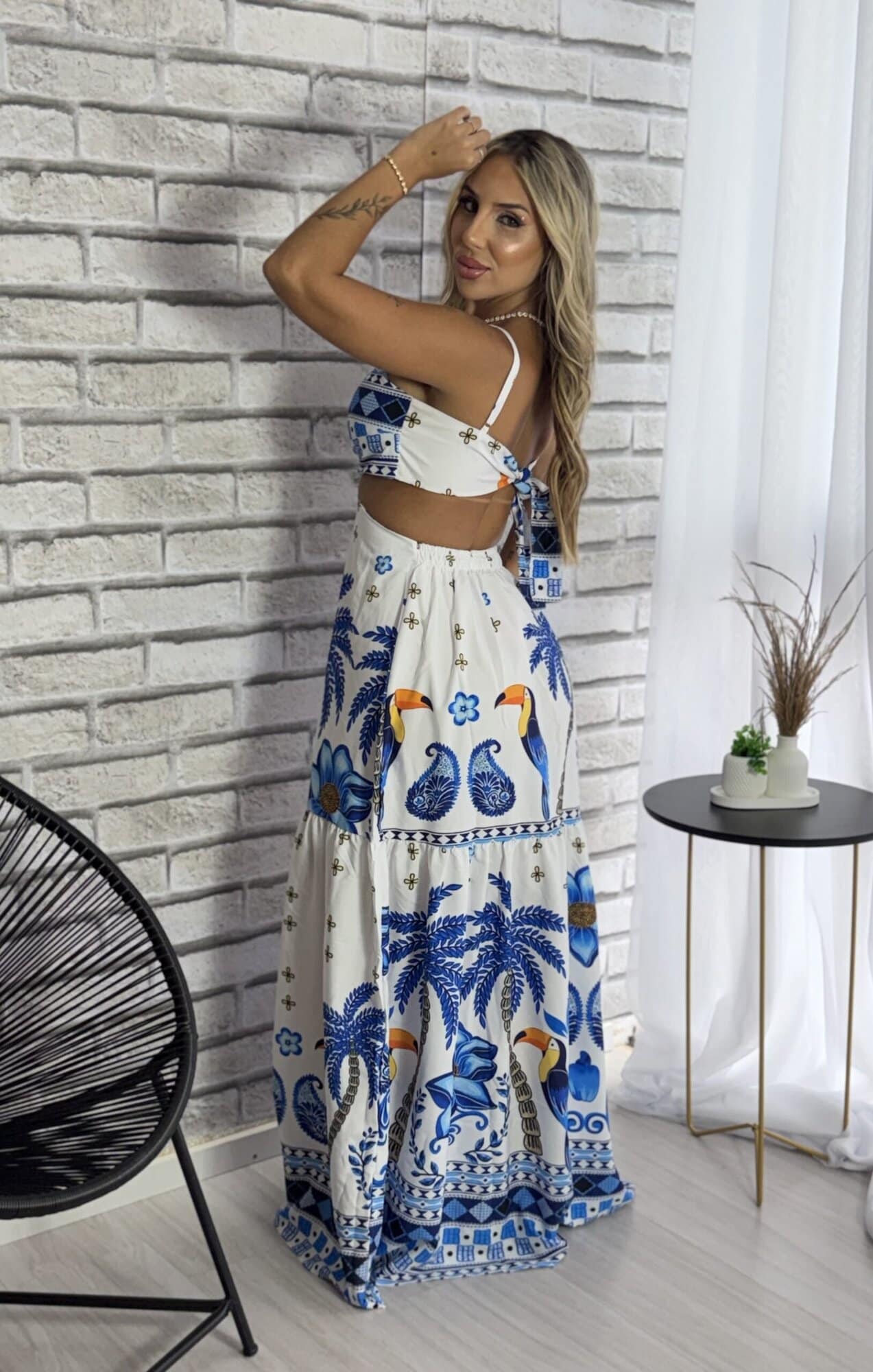 VESTIDO LONGO MARINEZ ESTAMPADO TUCANO AZUL